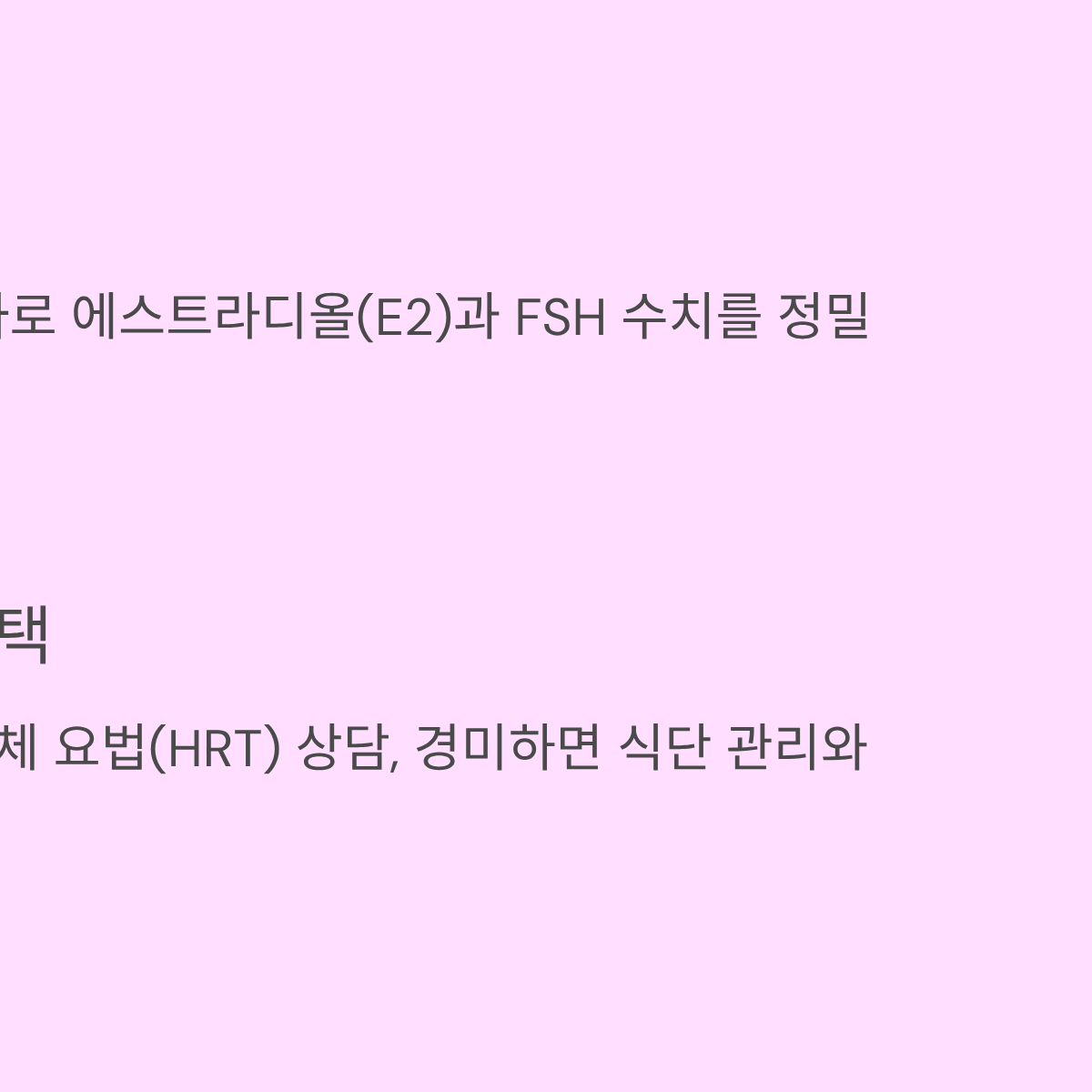 | 의료기관 방문 | 산부인과 정밀 혈액 검사 | 정확한 폐경 단계(초기/중기/말기) 파악 |