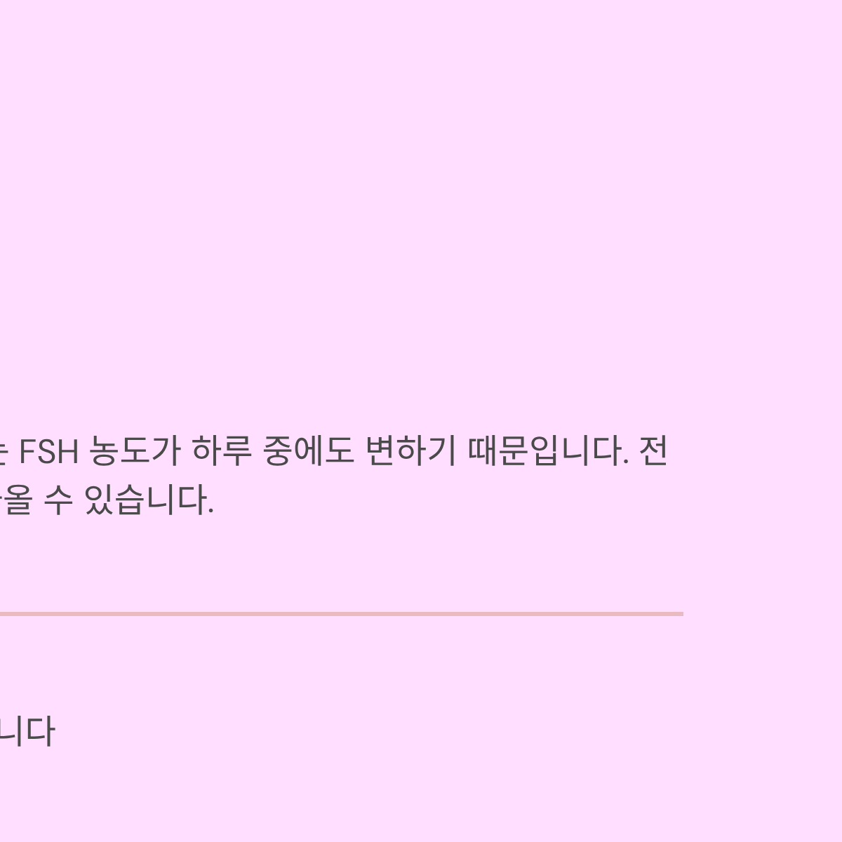 A: FSH 호르몬은 생리 주기에 따라 변하므로, 생리 시작 후 2~7일 사이에 검사하는 것이 가장 정확합니다. 호르몬제나 피임약을 복용 중이라면 결과에 영향을 줄 수 있으므로 전문의와 상담 후 진행하는 것이 좋습니다.