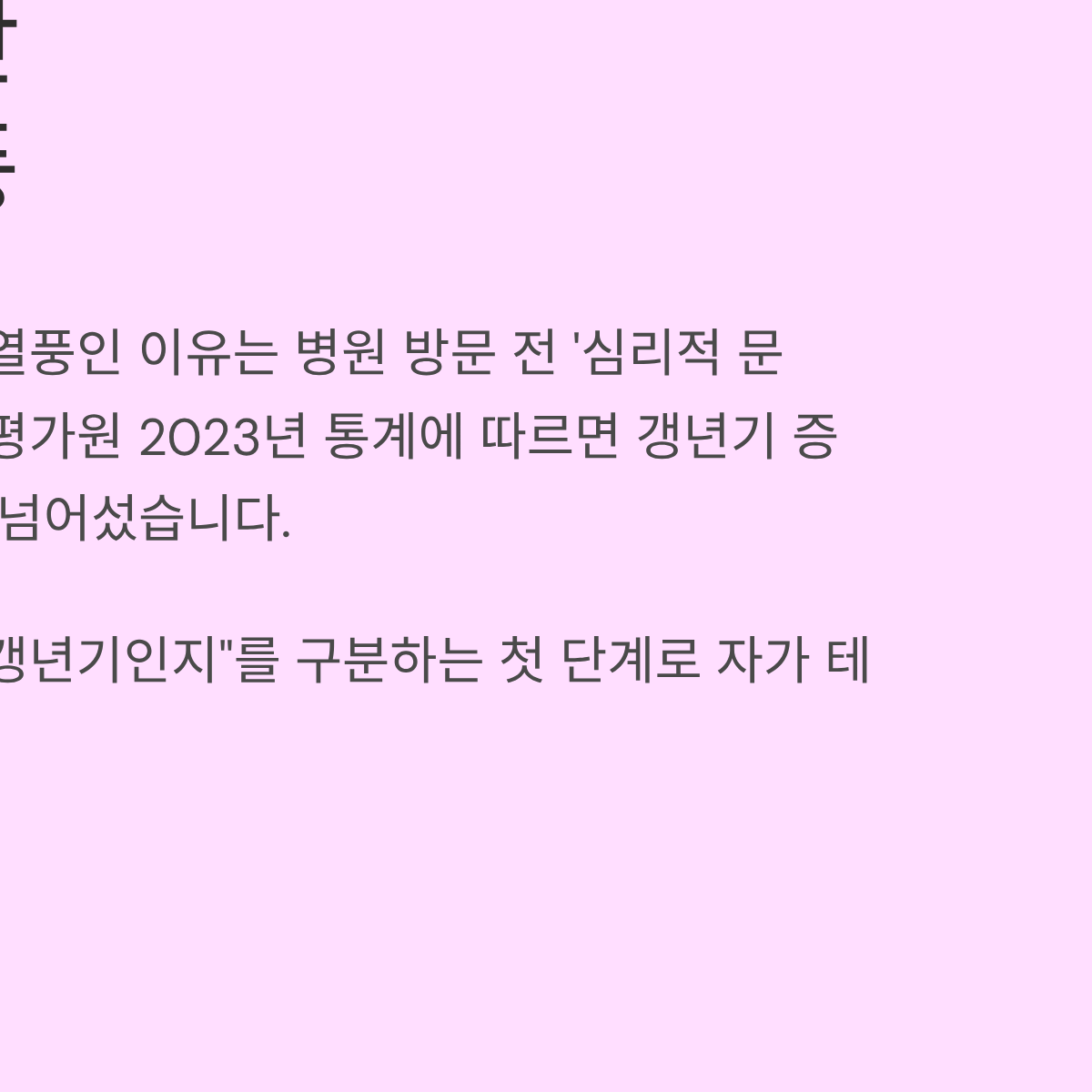 * 갱년기 테스트기는 '진단'이 아닌 '스크리닝(선별)' 도구입니다.