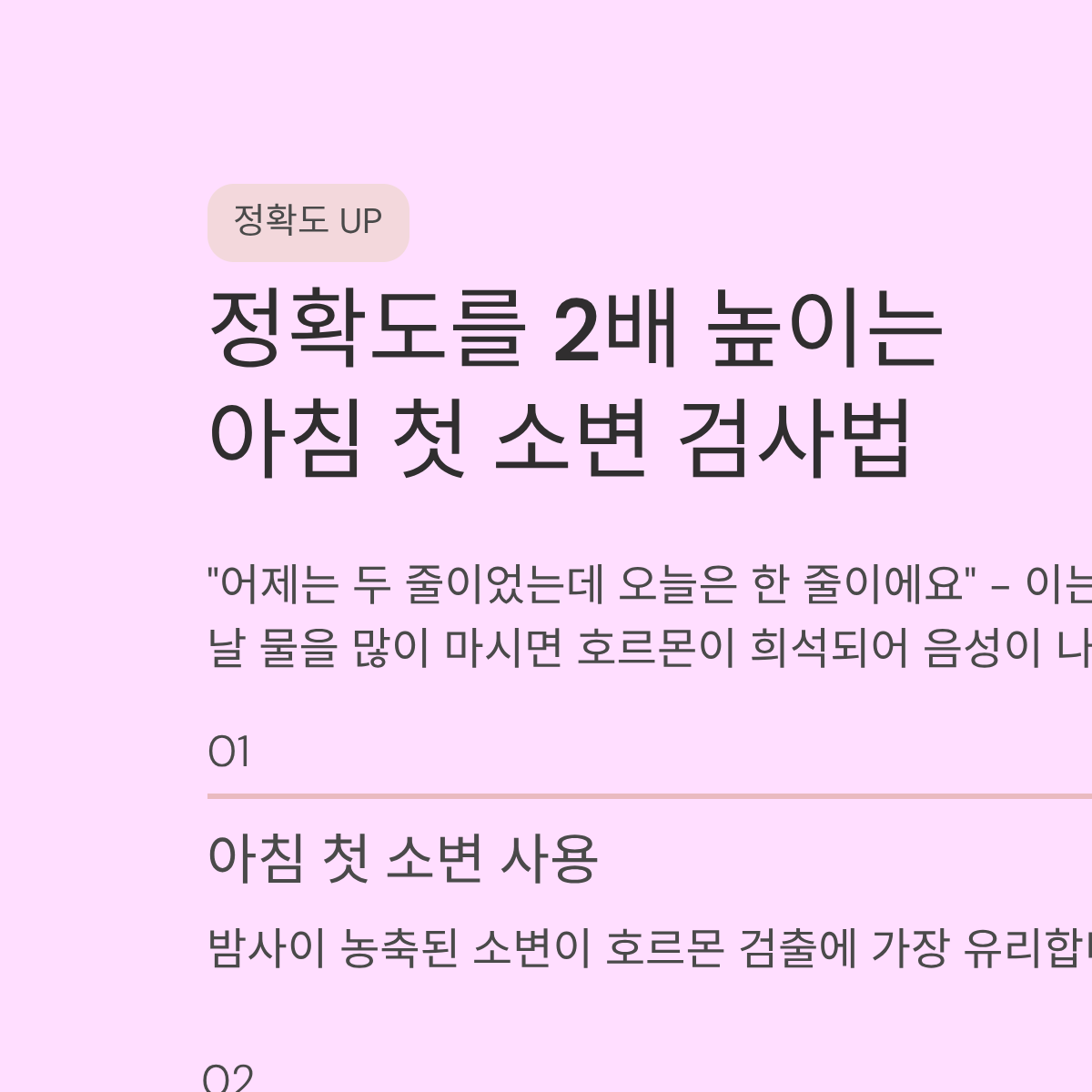 * 검사 적기: 호르몬 농도가 가장 진한 아침 첫 소변을 사용하세요.