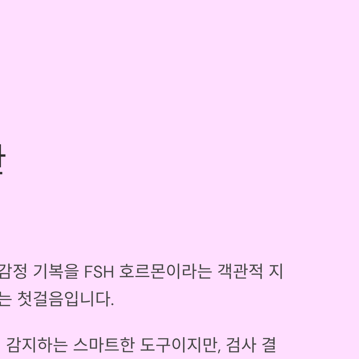 | 테스트 결과 | FSH 추정 수치 | 신체 상태 의미 | 권장 행동 지침 |