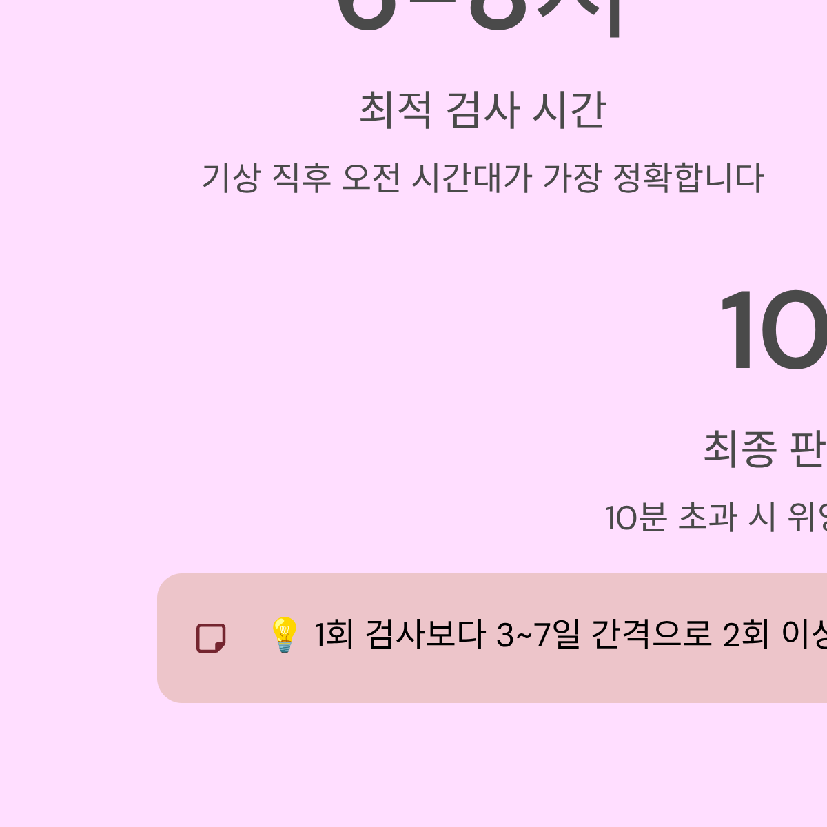 * 정확도 향상: 1회 검사보다는 1주일 간격으로 2회 이상 검사하여 일관된 결과를 확인하는 것이 좋습니다.