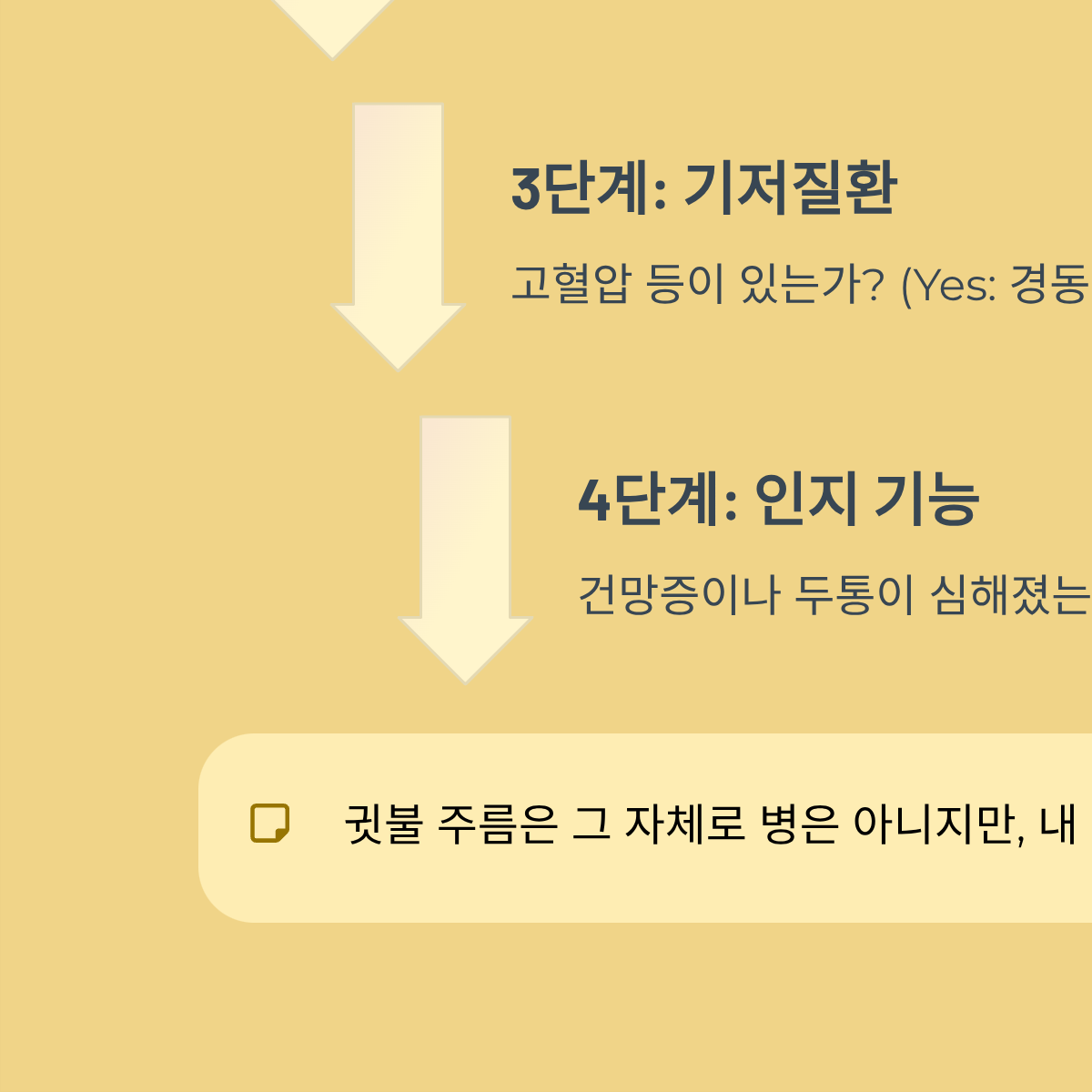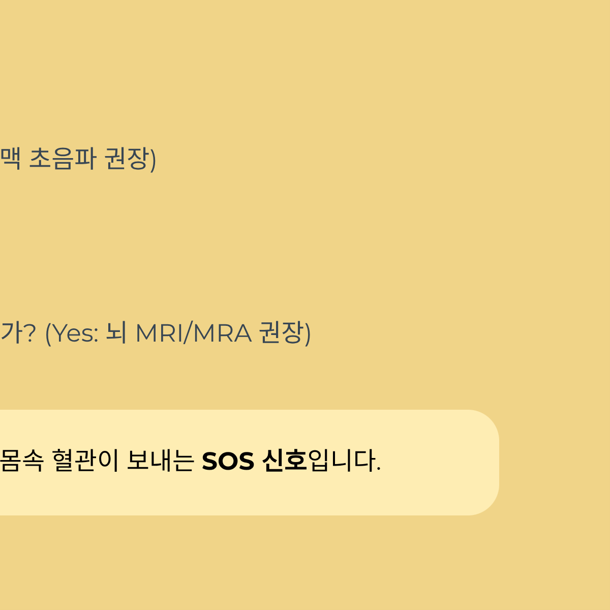 3. 기저질환(고혈압 등)이 있는가? → (Yes: [경동맥 초음파 권장] / No: 다음 단계로)