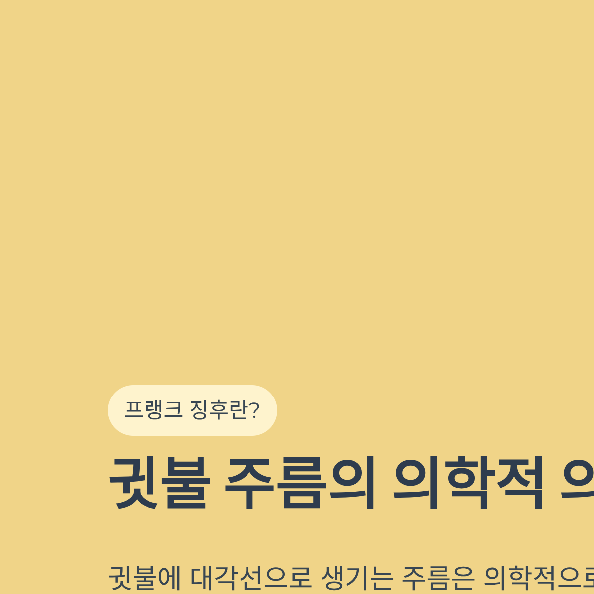A: 베개 자국은 시간이 지나면 사라지지만, 프랭크 징후는 귓불 하단에서 대각선 방향으로 깊게 파인 채 유지되는 것이 특징입니다. 단순 노화는 잔주름 형태가 많으나, 혈관 건강과 관련된 주름은 귓불을 가로지르는 뚜렷한 하나의 선으로 나타나는 경우가 많습니다.