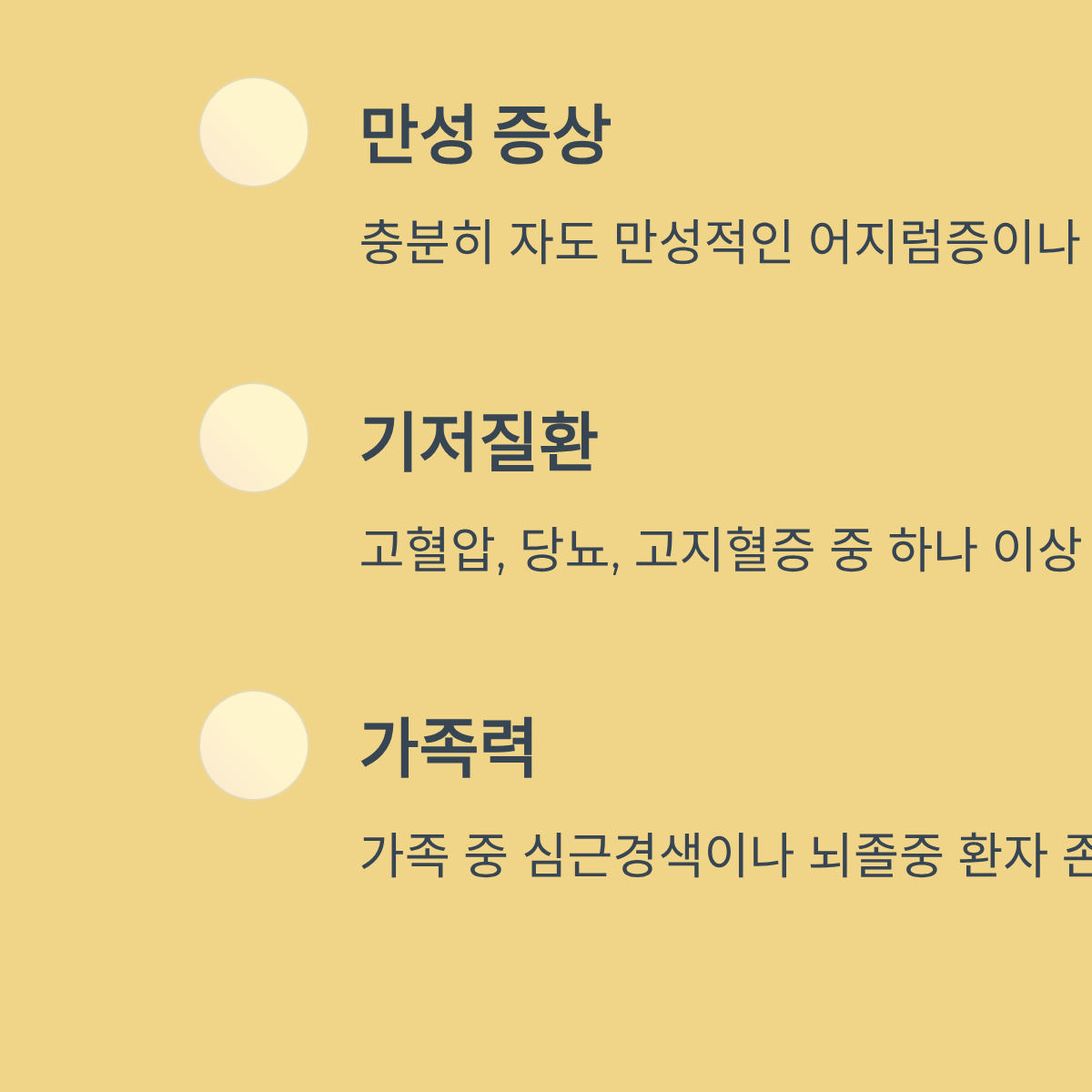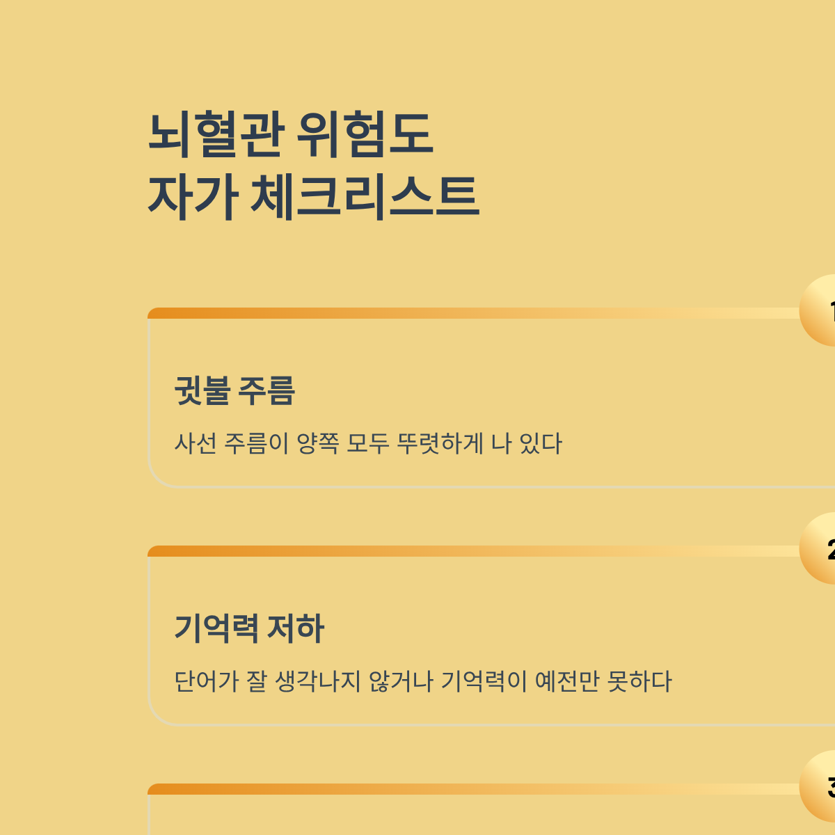 3. 인지 기능 확인: 최근 기억력 저하나 두통이 잦은가?