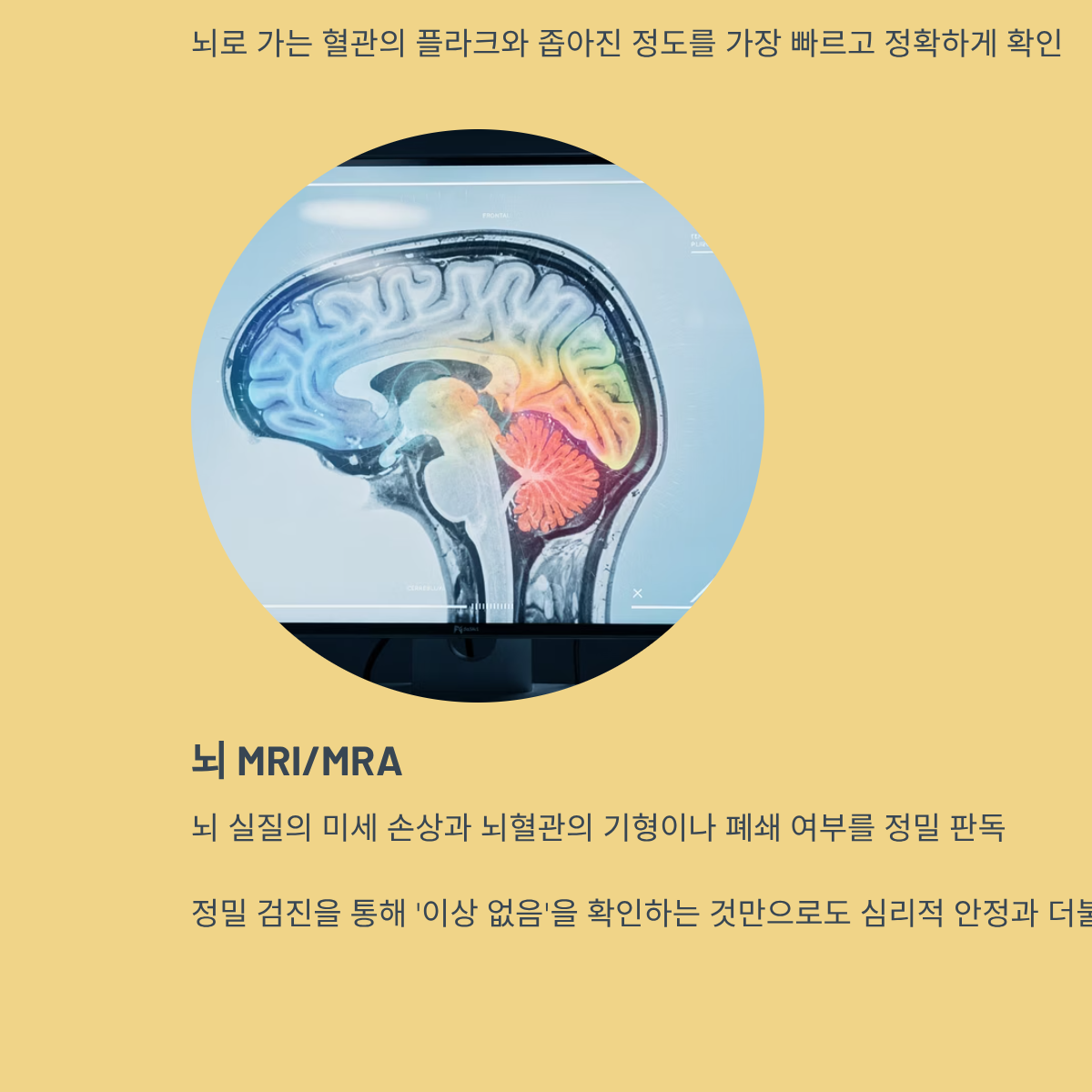 * 뇌 MRI/MRA: 뇌 실질의 미세 손상과 뇌혈관의 기형이나 폐쇄 여부를 정밀 판독.