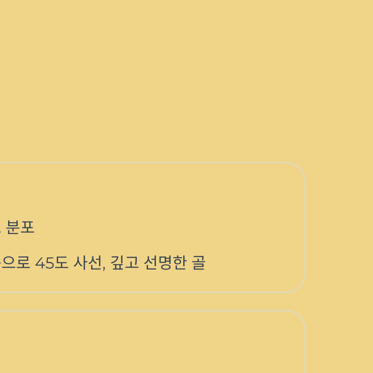 | 주름 형태 | 잔주름이 여러 방향으로 분포 | 귓불 하단에서 대각선으로 깊게 파임 | 방향과 깊이 |