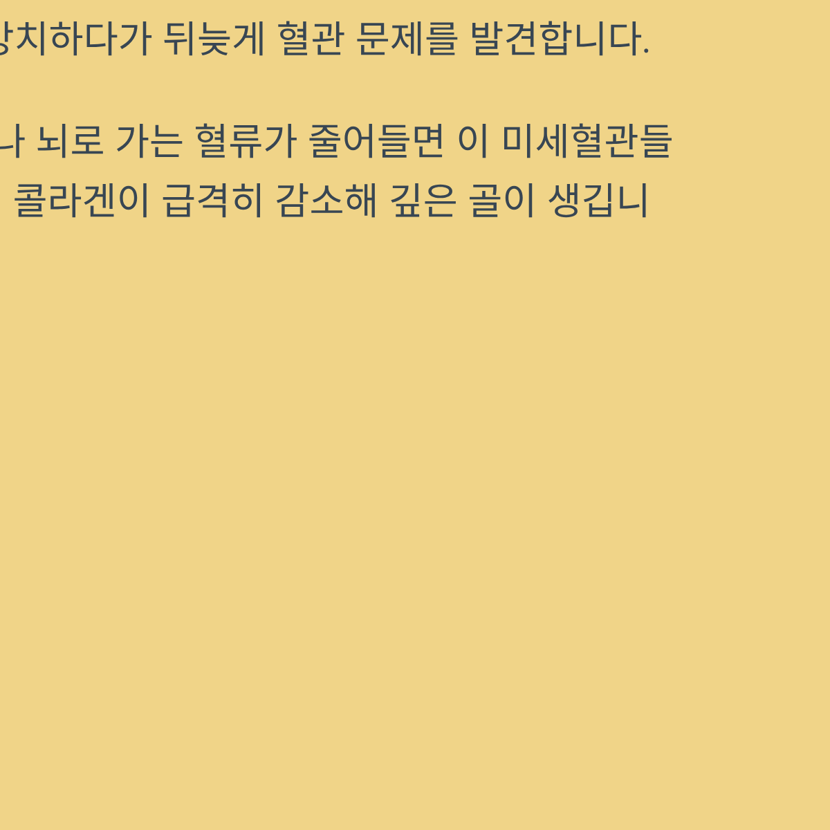 단순히 주름을 없애는 미용 시술에 집중하기보다, 내부 혈관의 탄력을 회복하는 것이 급선무입니다. 정밀 검진을 통해 '이상 없음'을 확인하는 것만으로도 심리적 안정과 더불어 향후 발생할 수 있는 중증 질환을 80% 이상 예방할 수 있습니다.