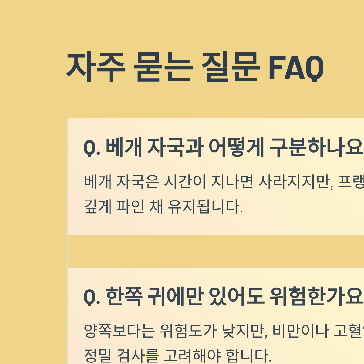 - 주의사항: 귓불 주름은 '원인'이 아니라 혈관 건강 악화를 보여주는 '결과'이므로, 주름 자체보다 내부 혈관 관리에 집중해야 합니다.
