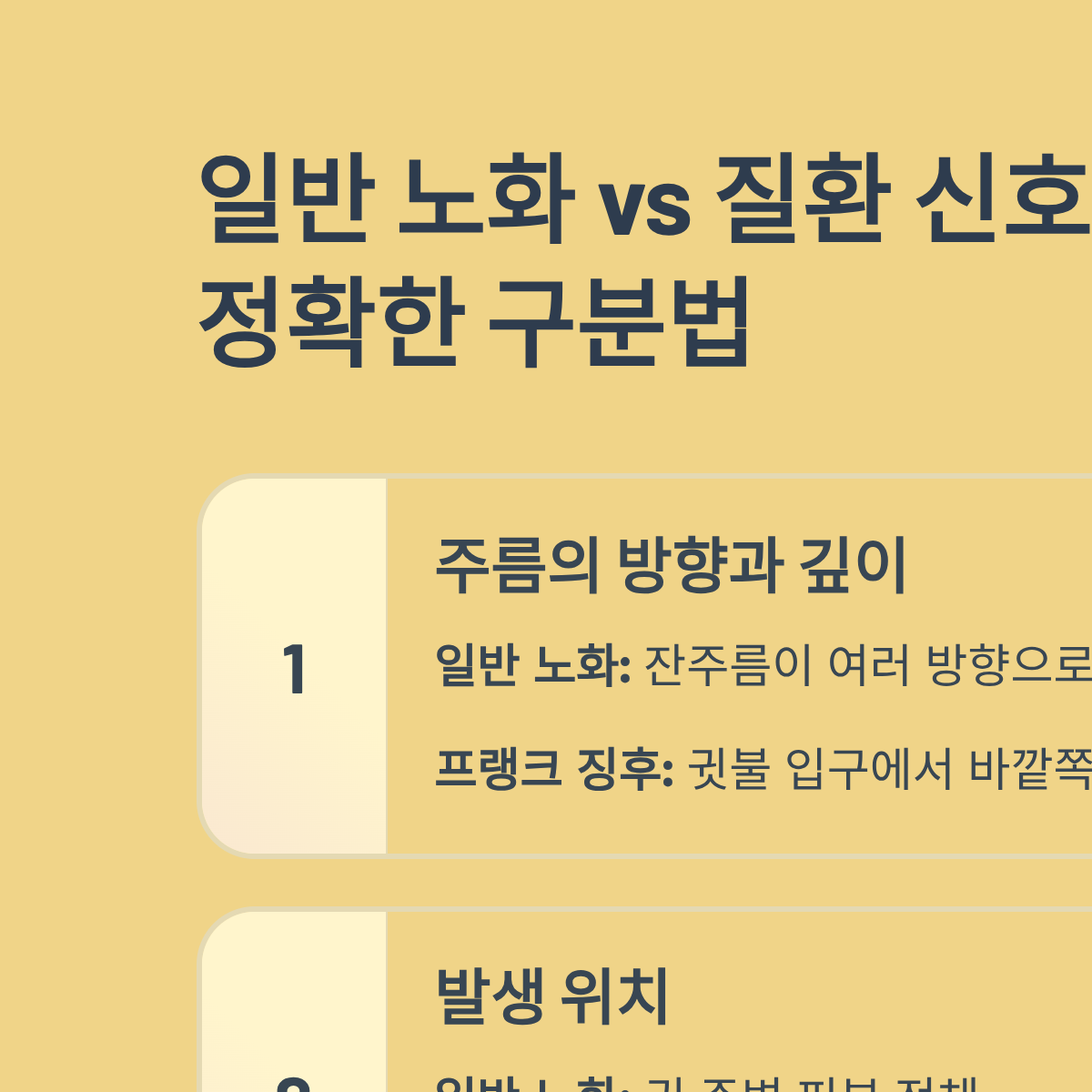 [표 1] 일반 노화 주름 vs 프랭크 징후(질환 의심) 비교