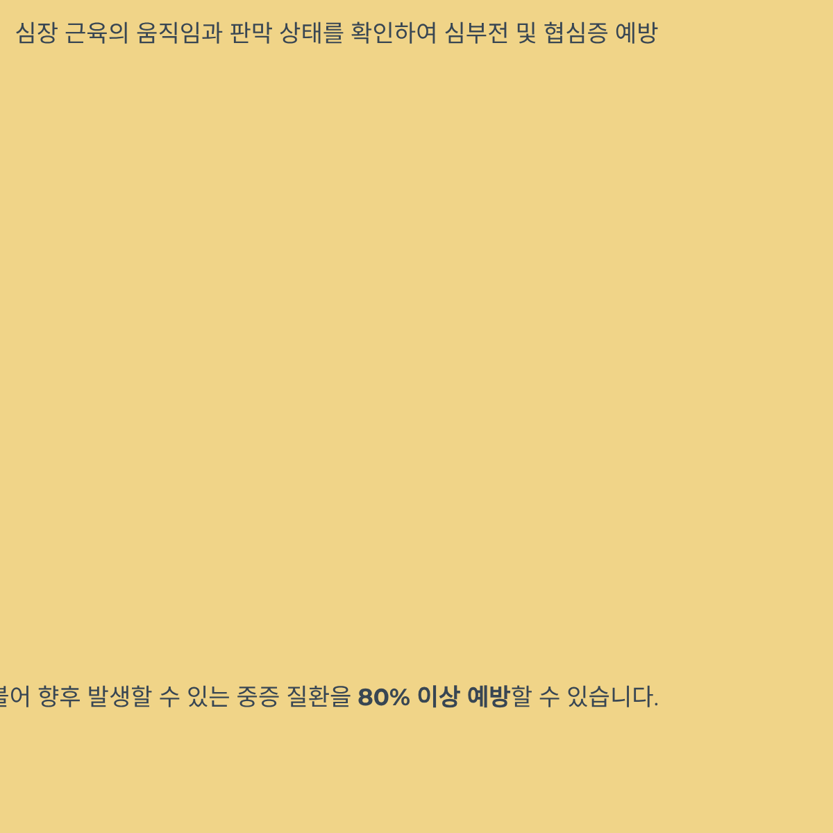 * 심장 초음파: 심장 근육의 움직임과 판막 상태를 확인하여 심부전 및 협심증 예방.