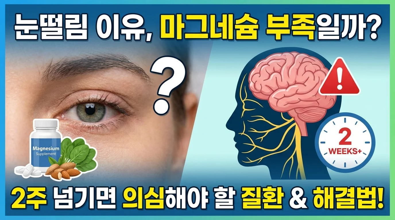 갑자기 눈꺼풀이 파르르 떨리면 마그네슘부터 찾으시나요? 하지만 눈떨림 이유는 단순 영양 결핍을 넘어 뇌신경 신호나 생활 습관의 복합적인 결과입니다. 흔한 원인 분석은 물론 2주 이상 지속 시 의심해야 할 질환과 실패 없는 영양제 선택 기준까지, 몸이 보내는 경고를 해결할 명확한 가이드를 제시합니다.