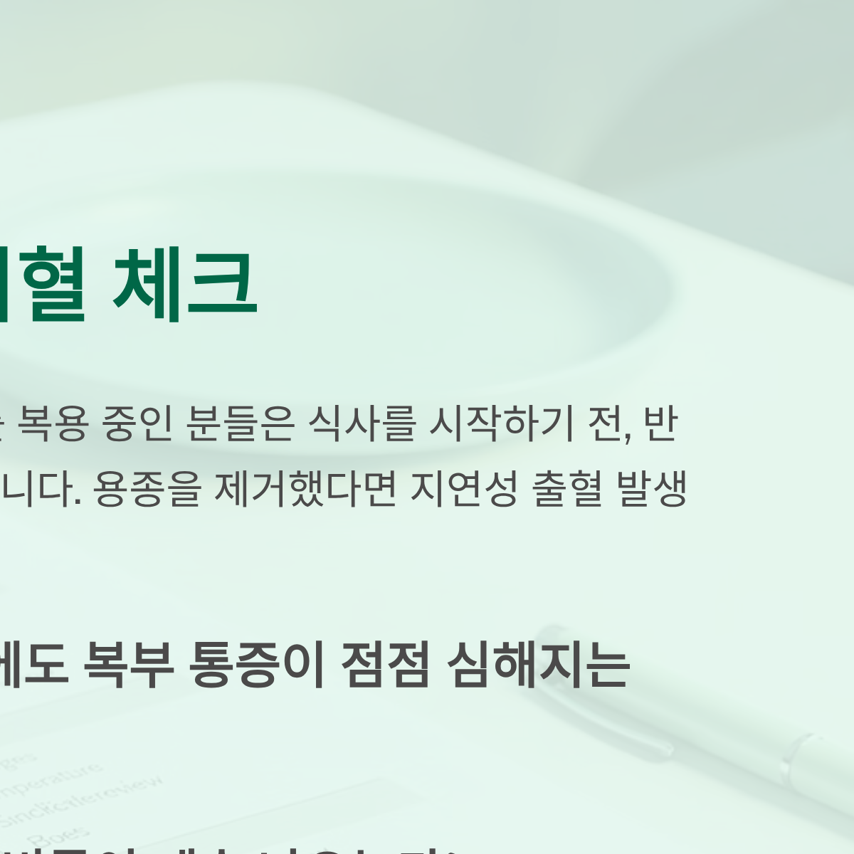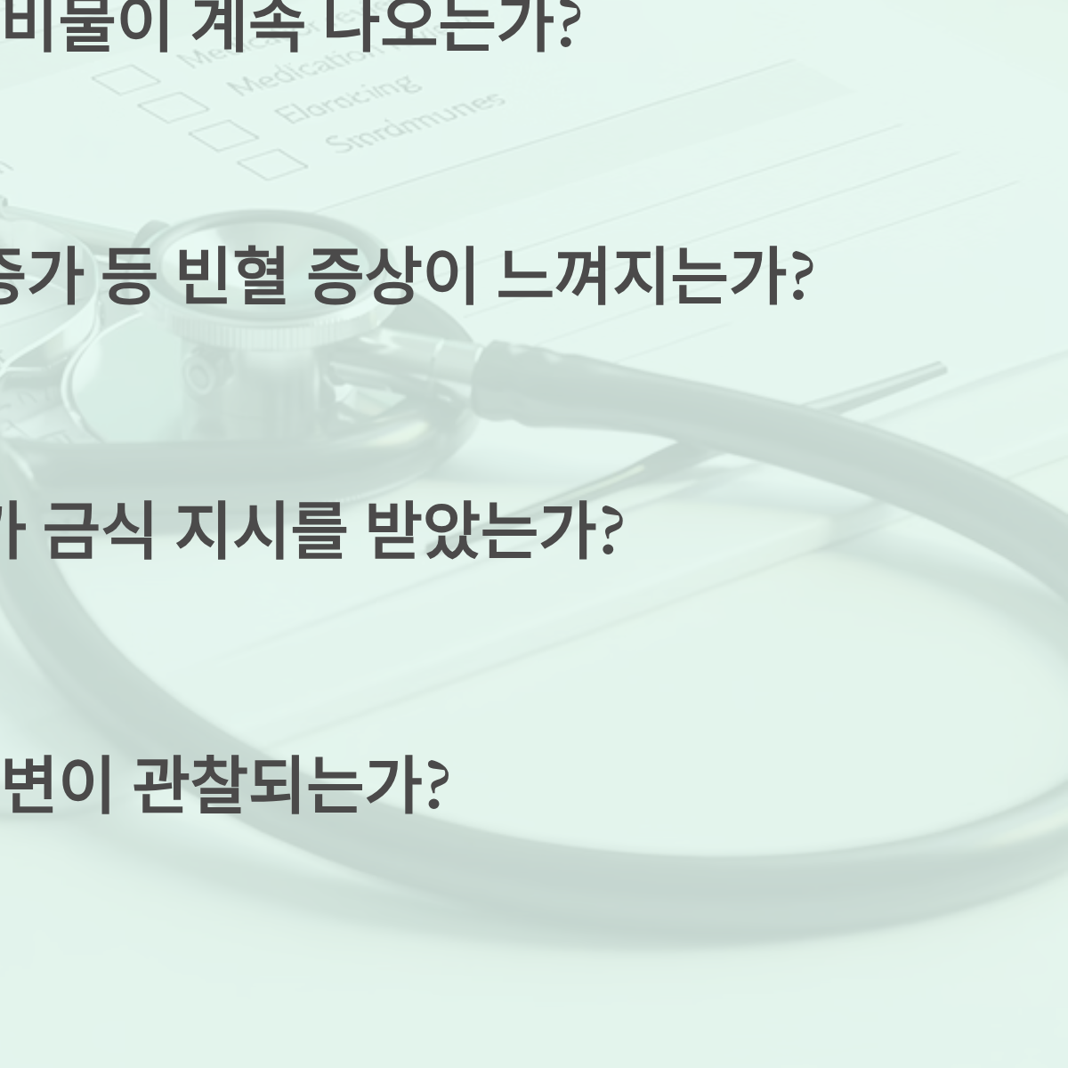 - [ ] 검사 후 1시간 이상 지났음에도 복부 통증이 점점 심해지는가?