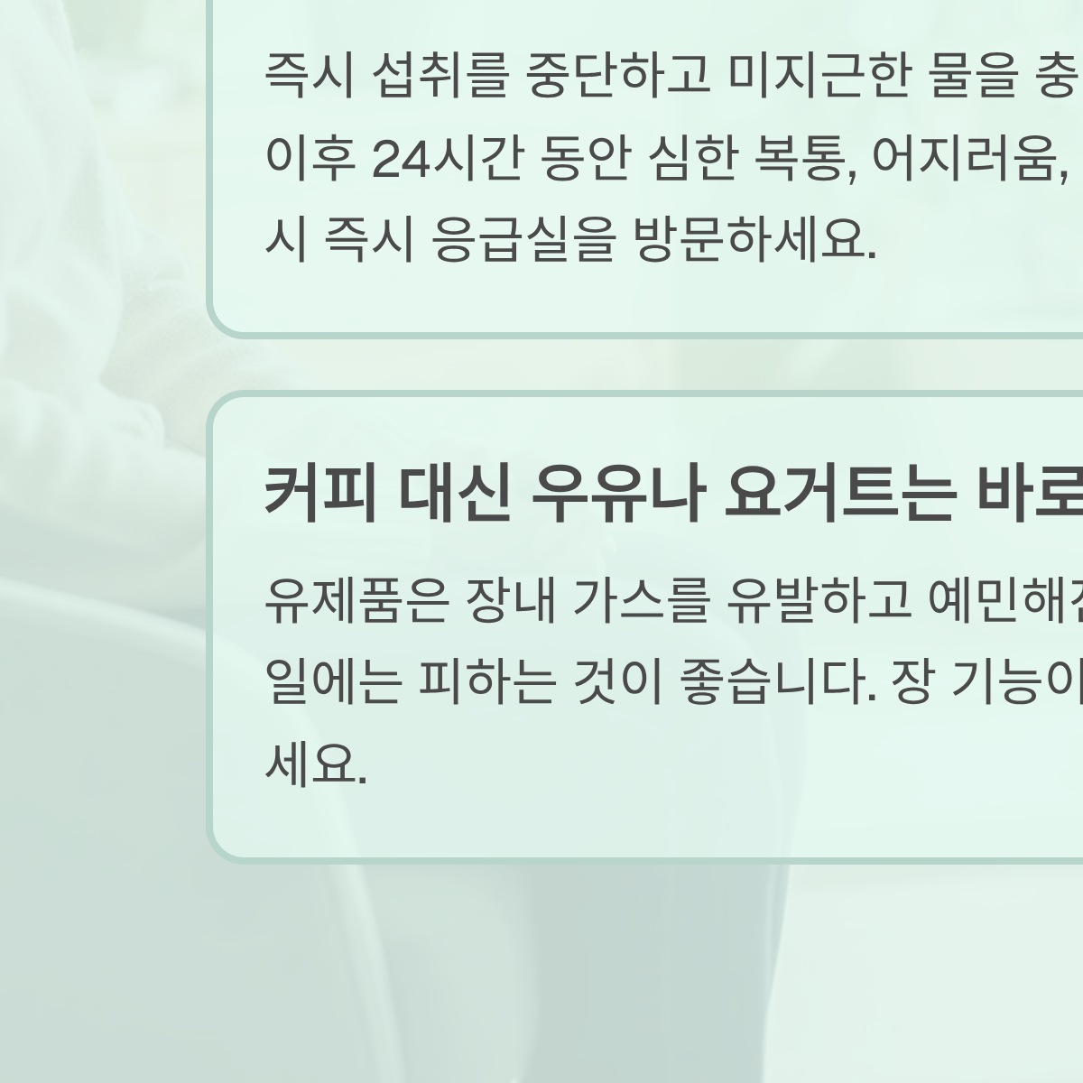 Q: 커피 대신 우유나 요거트 같은 유제품은 바로 먹어도 괜찮을까요?
