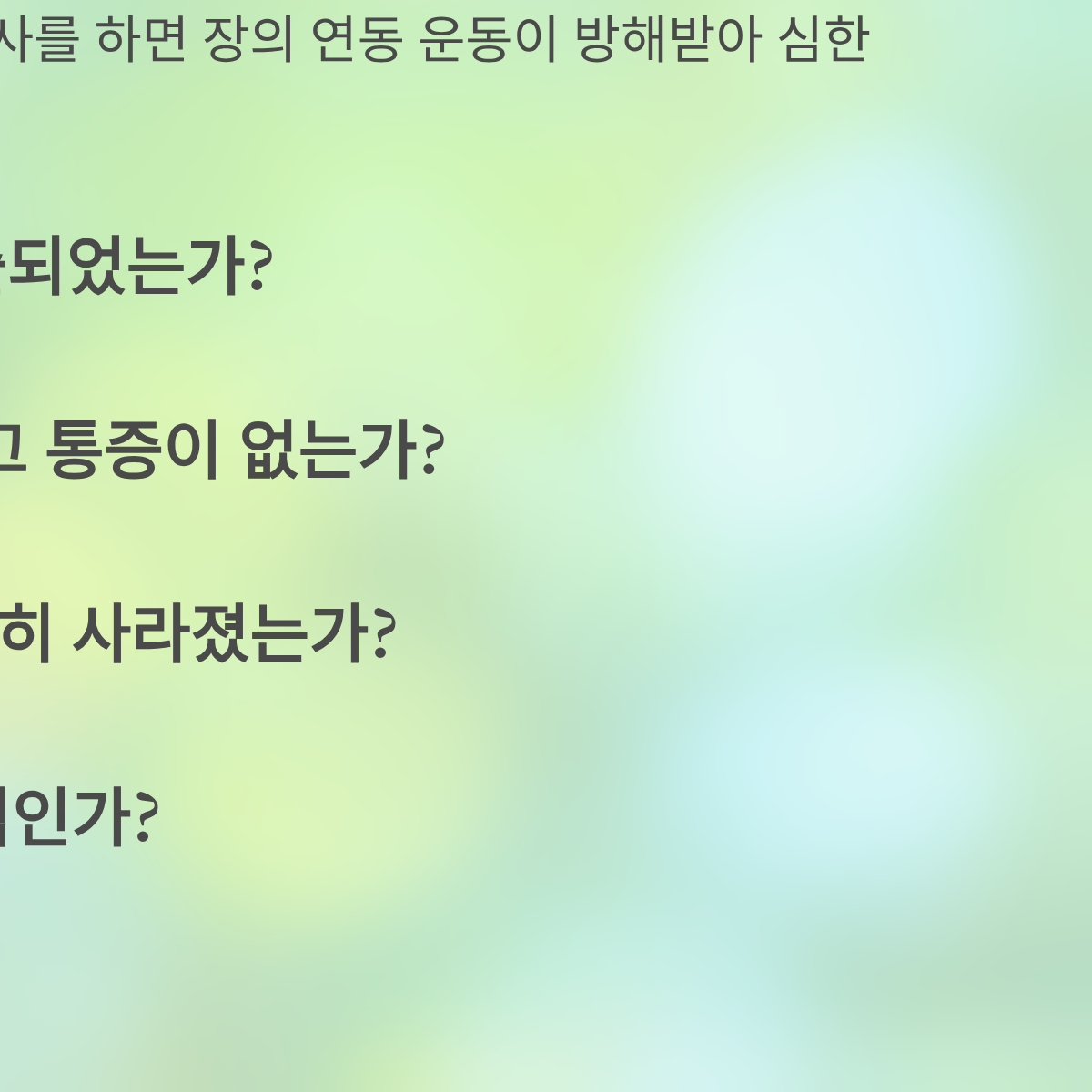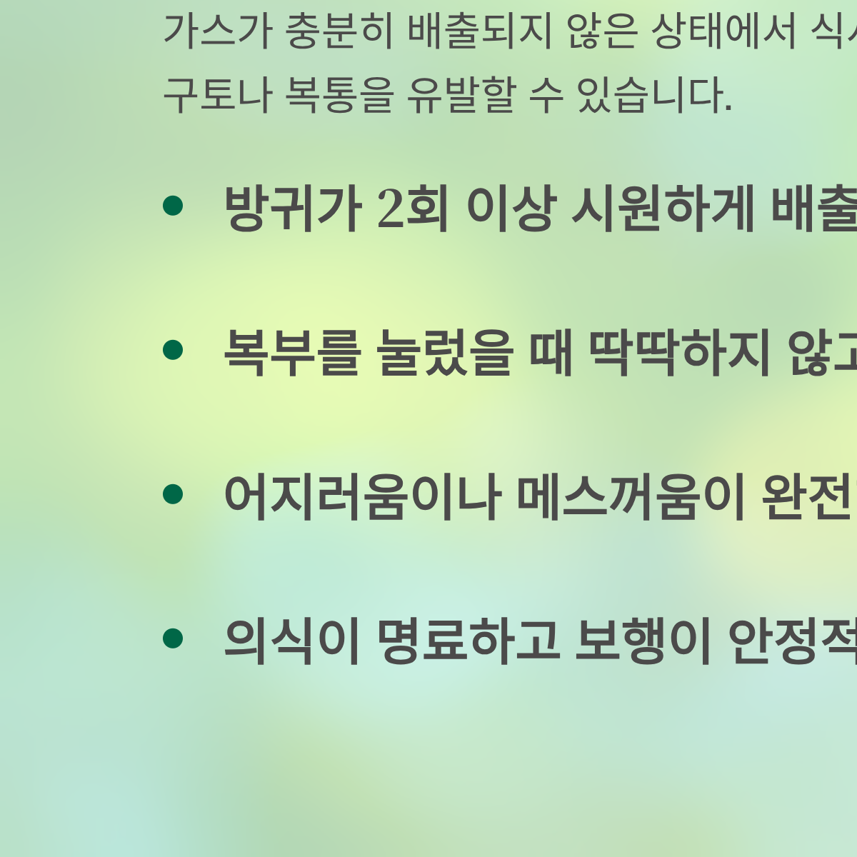 - [ ] 방귀(가스)가 2회 이상 시원하게 배출되었는가?