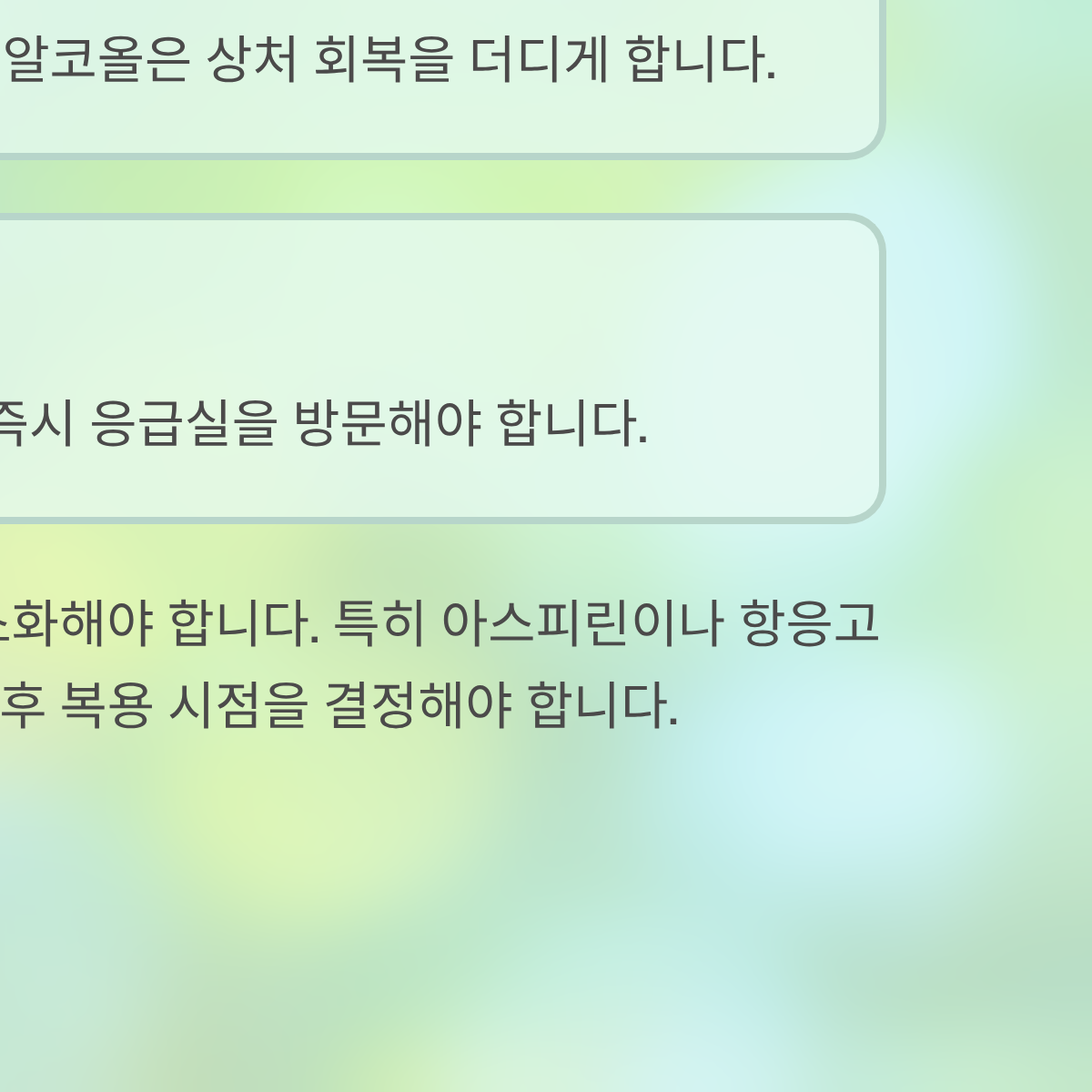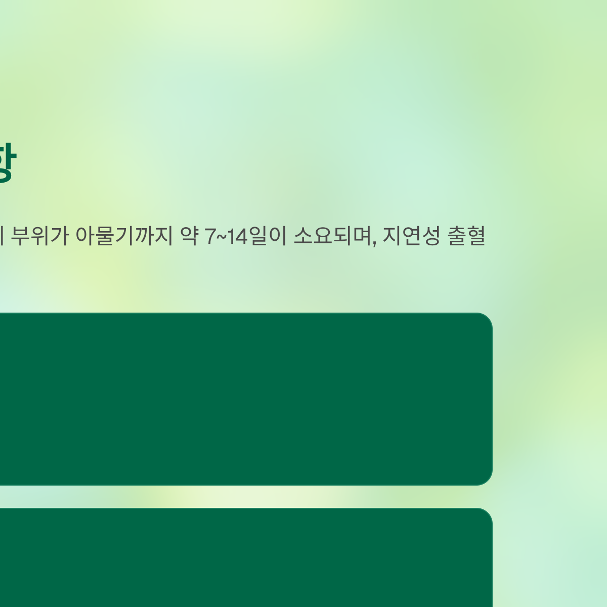 - 실전 팁: 1주일간은 '환자'라는 생각으로 자극을 최소화해야 합니다. 특히 아스피린이나 항응고제를 복용 중이라면 주치의와 반드시 상의 후 복용 시점을 결정해야 합니다.
