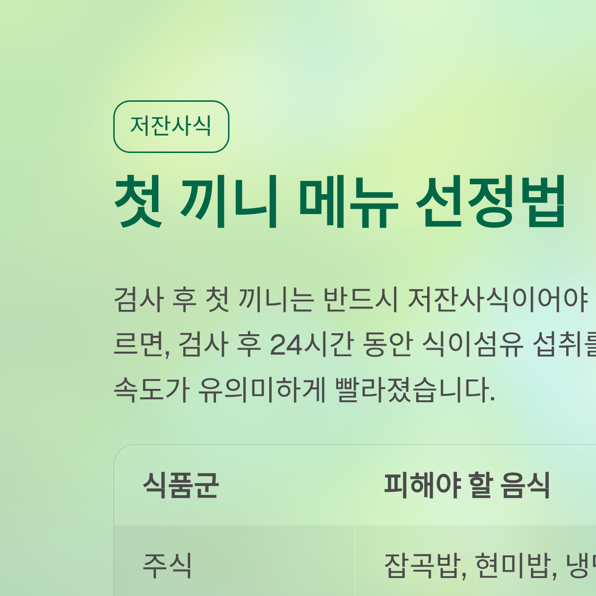 검사 직후 첫 끼니로 추천하는 부드러운 '저잔사식' 메뉴 선정법
