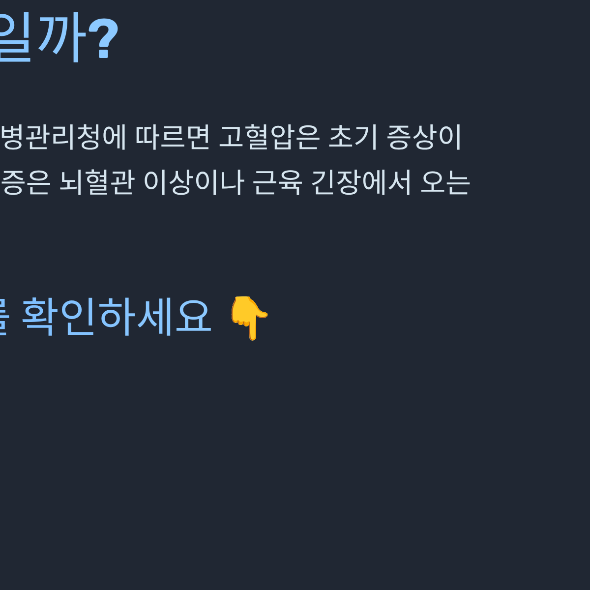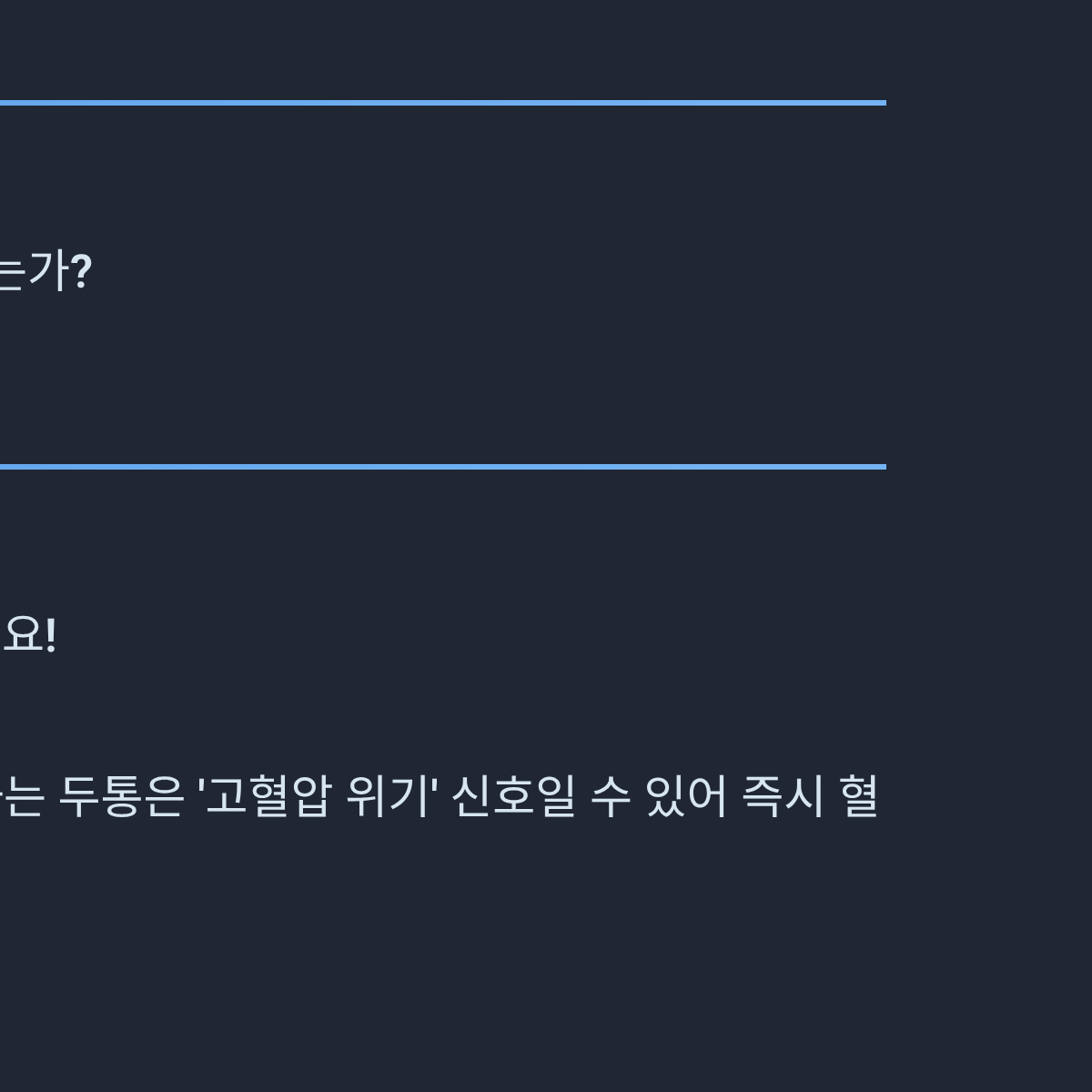 - 인사이트: 혈압약 복용 중인 환자가 갑자기 평소와 다른 양상의 뒷골 통증을 느낀다면 수치와 상관없이 전문의 진단이 필수입니다.