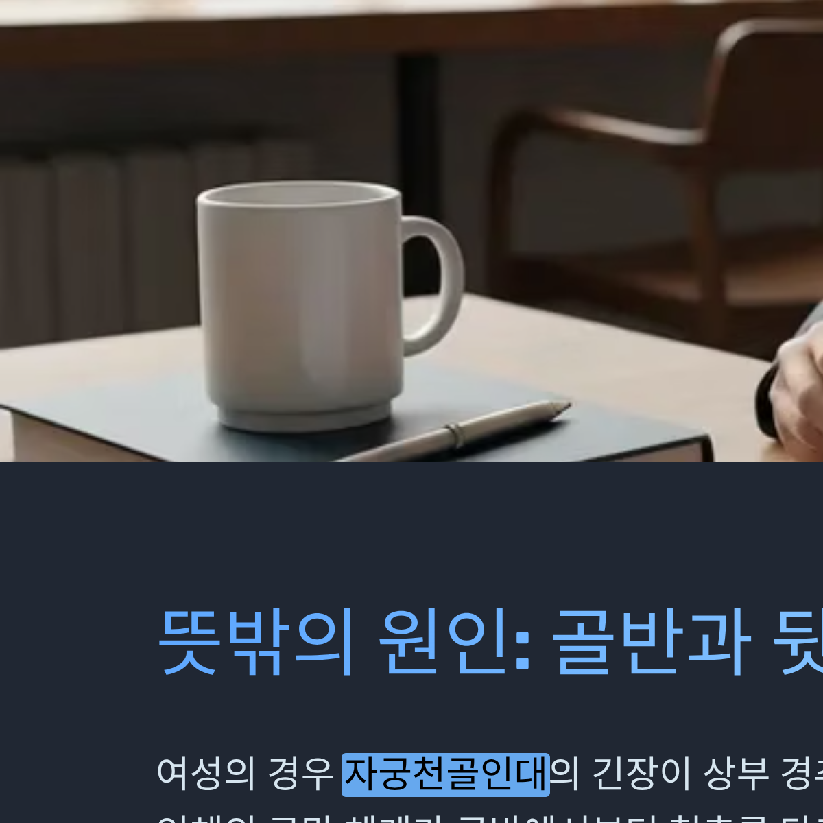 | 구분 | 일반 긴장성 두통 | 자궁천골인대 연관 통증 | 핵심 판단 기준 |