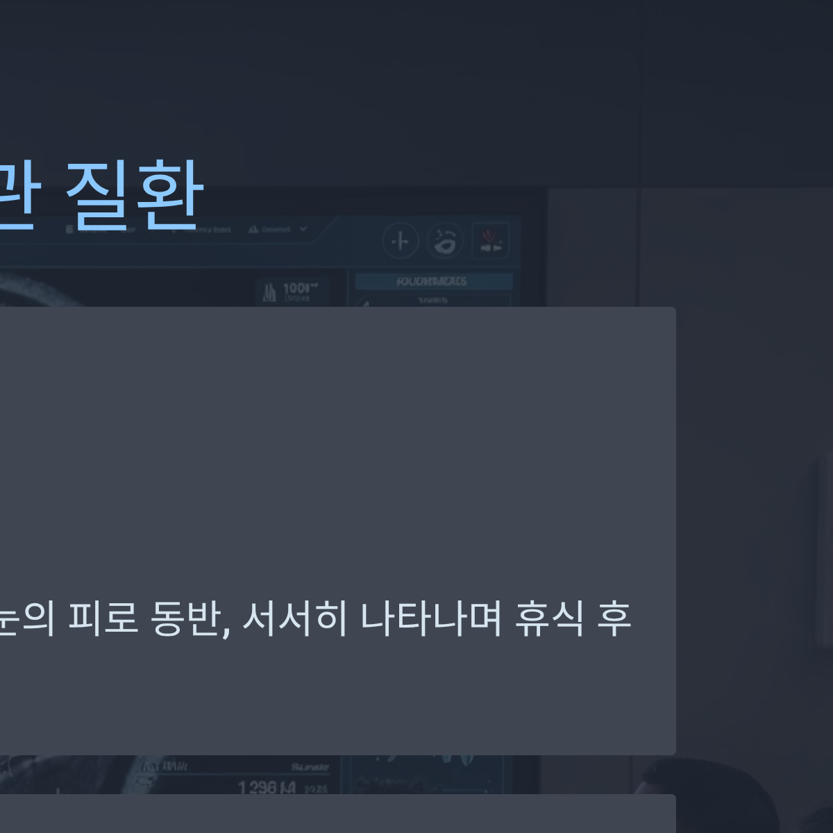| 눈 통증 | 눈 뒷부분이 찌르는 듯한 통증 동반 | 눈이 침침하고 피로감이 심함 |