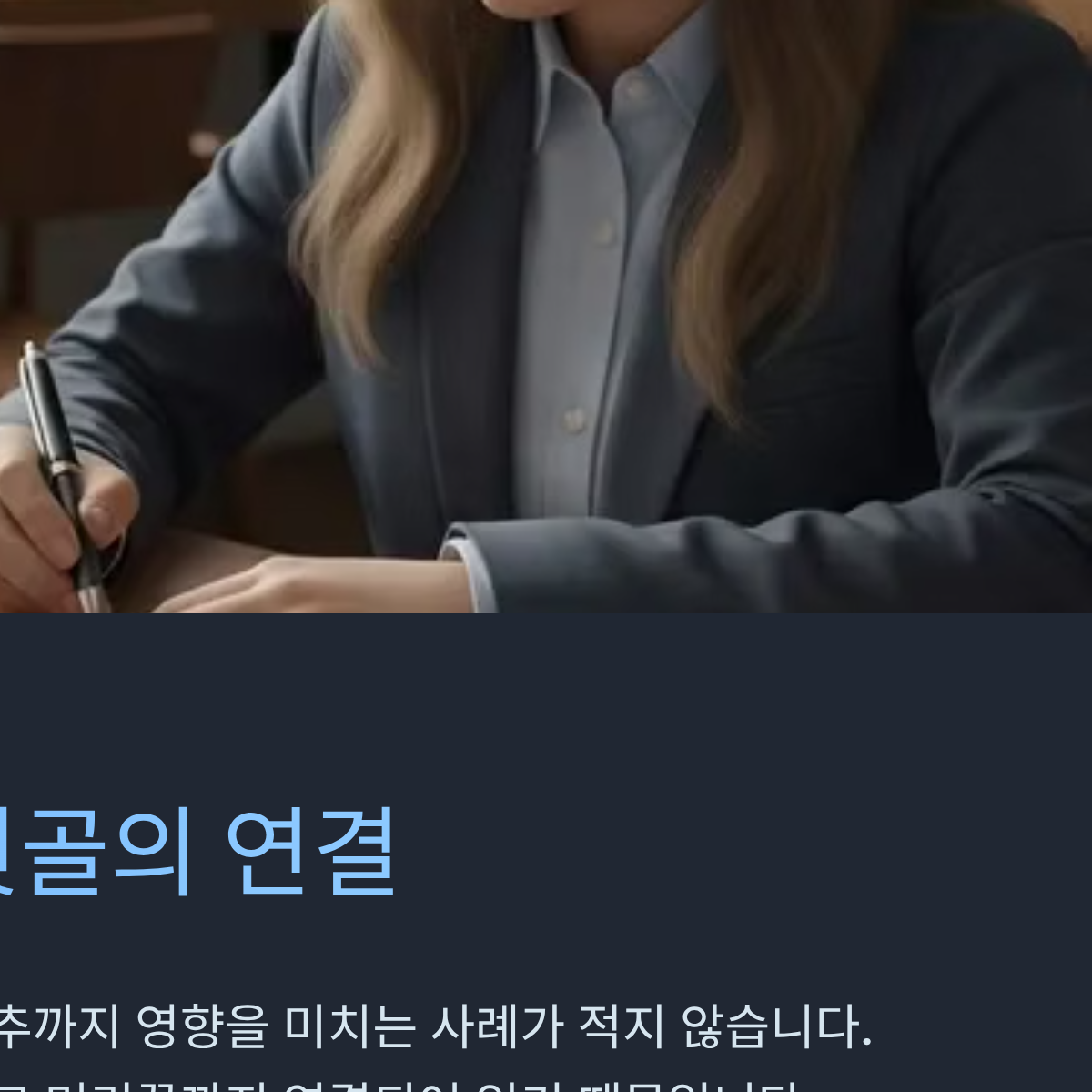 많은 분이 뒷골이 땡기면 단순히 목 근육의 문제라고만 생각하지만, 제가 임상 현장에서 관찰한 결과 여성 독자들의 경우 자궁천골인대(Uterosacral Ligament, 자궁과 천골을 연결하는 인대)의 긴장이 상부 경추까지 영향을 미치는 사례가 적지 않았습니다. 이는 인체의 근막 체계가 골반에서부터 척추를 타고 머리끝까지 연결되어 있기 때문입니다. 특히 생기 주기나 골반 변위(Pelvic Misalignment)가 있을 때 발생하는 요통이 신경 경로를 타고 후두부(Occiput, 뒷머리) 통증으로 이어지는 '상행성 통증 체인' 현상은 일반적인 정보글에서는 좀처럼 다루지 않는 핵심 정보입니다.