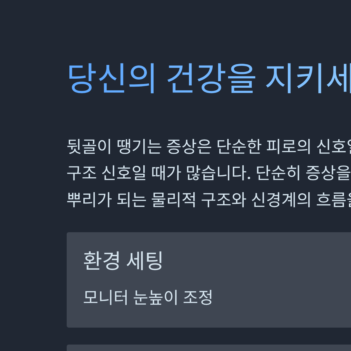 단순히 증상을 누르는 진통제 처방에서 벗어나, 통증의 뿌리가 되는 물리적 구조와 신경계의 흐름을 이해하는 것이 이번 콘텐츠의 핵심 가치입니다. 원인 모를 통증에 답답하셨다면 오늘 소개해 드린 모니터 눈높이 세팅과 15분 마사지 루틴을 지금 바로 실천해 보세요. 작은 생활 습관의 변화가 만성적인 통증의 굴레를 끊어내고 일상의 쾌적함을 되찾아주는 가장 빠른 지름길이 될 것입니다.