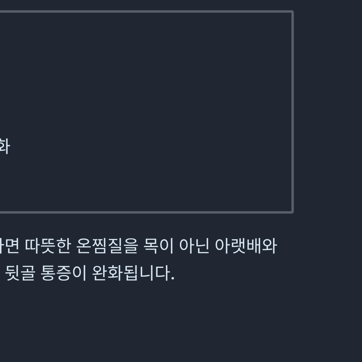 - 실전 적용 팁: 생리 전후로 뒷골 당김이 심해진다면 따뜻한 온찜질을 목이 아닌 아랫배와 천골 부위에 해보세요. 근막 긴장이 풀리며 뒷골 통증이 완화되는 경험을 하실 수 있습니다.
