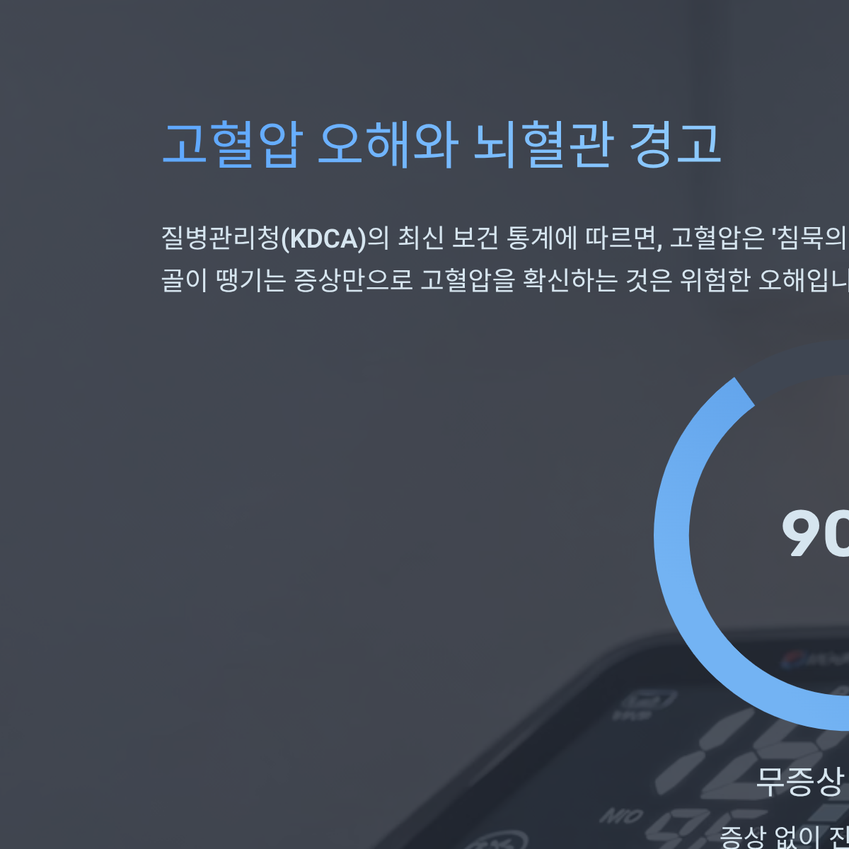 "뒷목 잡고 쓰러지는 것 보니 혈압 때문인가요?"라는 질문을 정말 많이 받습니다. 하지만 질병관리청(KDCA)의 최신 보건 통계에 따르면, 고혈압은 '침묵의 살인자'라 불릴 만큼 증상이 없는 경우가 90% 이상입니다. 즉, 뒷골이 땡기는 증상만으로 고혈압을 확신하는 것은 위험한 오해입니다. 진짜 무서운 것은 단순 두통으로 오인해 뇌졸중(Stroke, 뇌혈관 사고)의 골든타임(Golden Time, 발병 후 3~4.5시간)을 놓치는 것입니다. 제가 상담했던 환자 중에도 단순 피로인 줄 알고 잠을 청했다가 마비 증상이 악화된 안타까운 사례가 있었습니다.