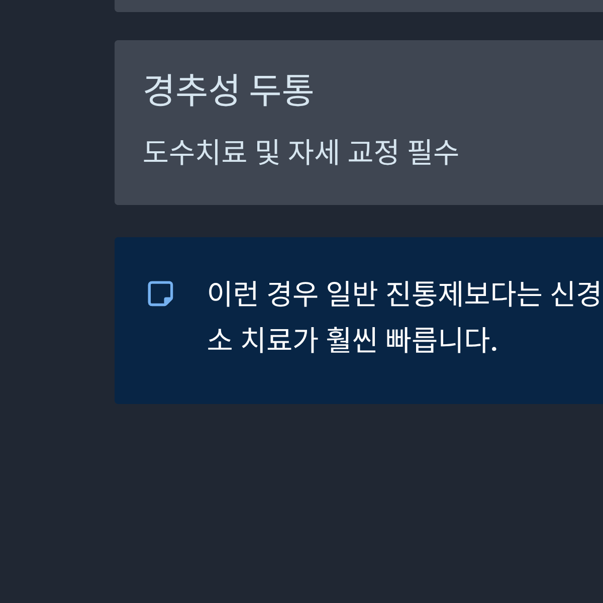 * 이런 경우 일반 진통제보다는 신경 통증 조절제나 물리적인 신경 압박 해소 치료가 훨씬 빠릅니다.