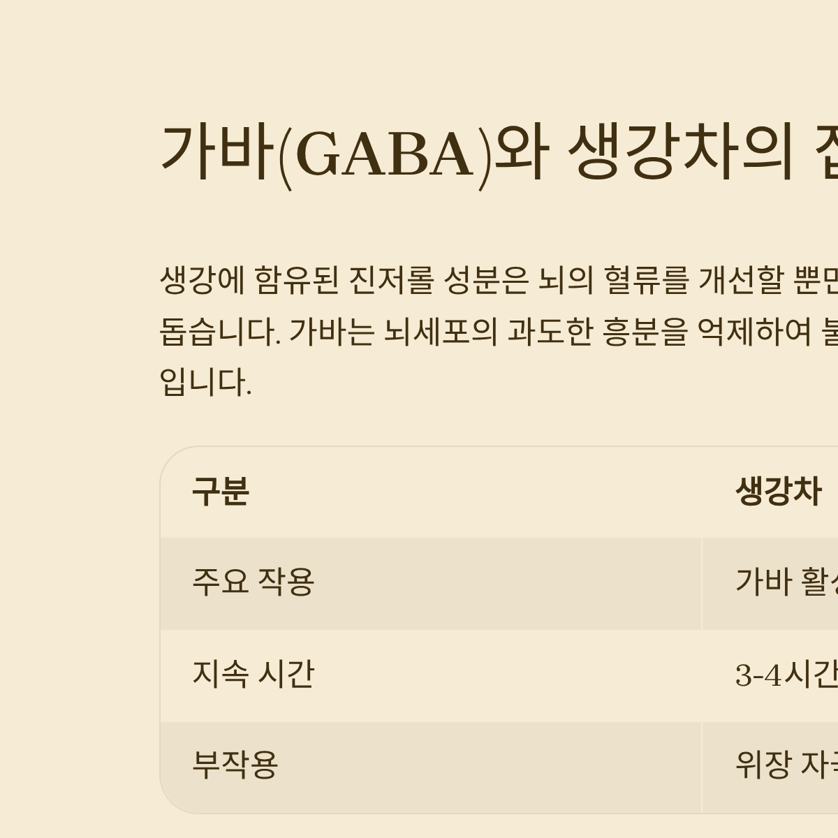 집중력을 높이는 가바 성분과 생강차의 정신 안정 효과