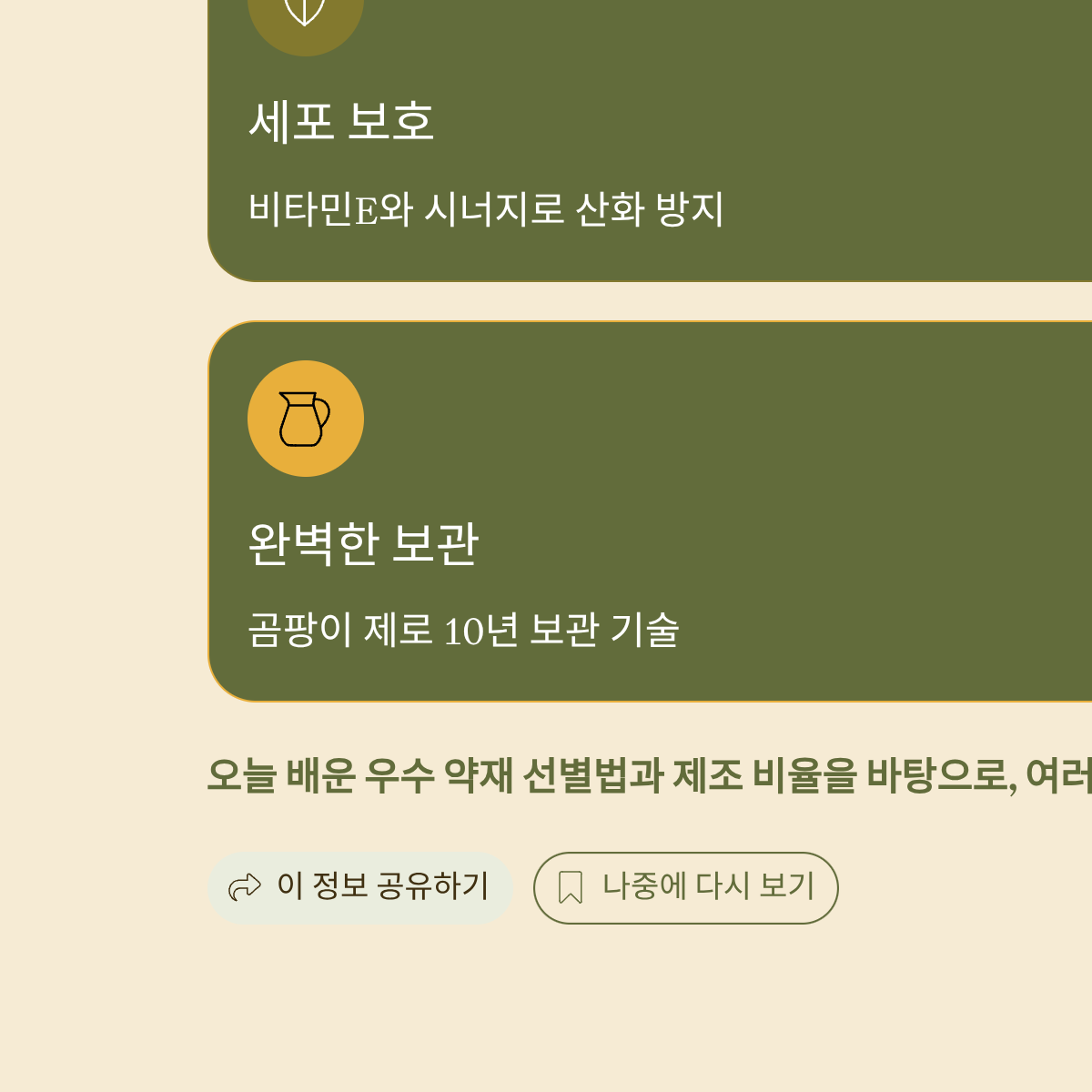 | 1단계: 방어 | 세포막 산화 직접 차단 | 항산화 효소(SOD) 활성화 | 산화 스트레스 1차 감소 |