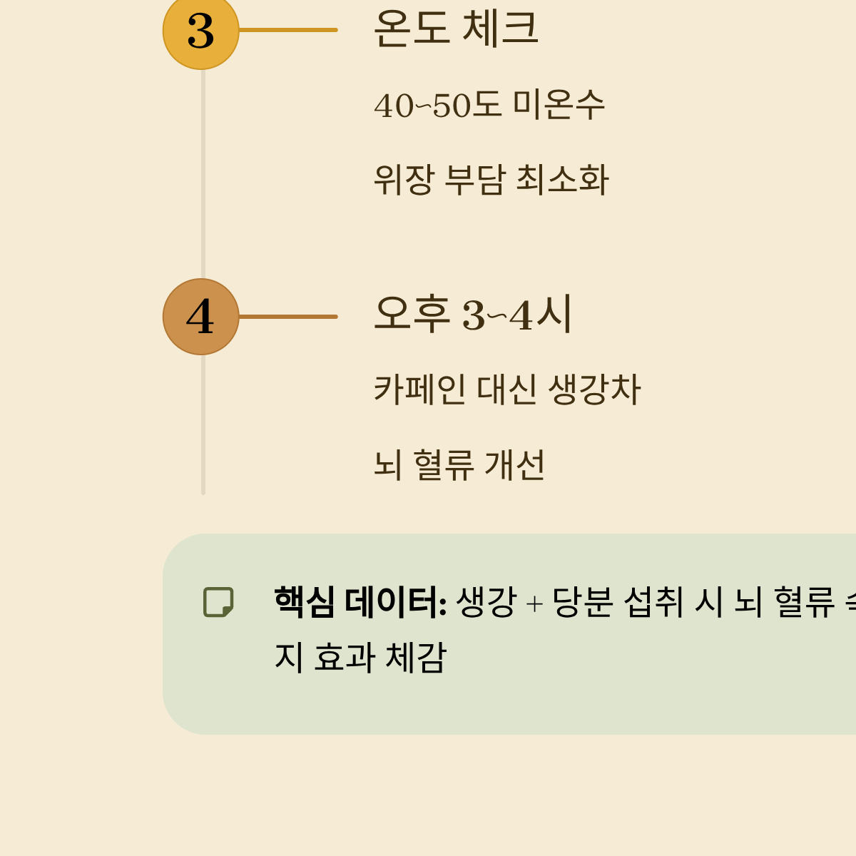 - [ ] 집중력 저하 시점: 오후 3~4시경 카페인 대신 생강차로 뇌 혈류 개선