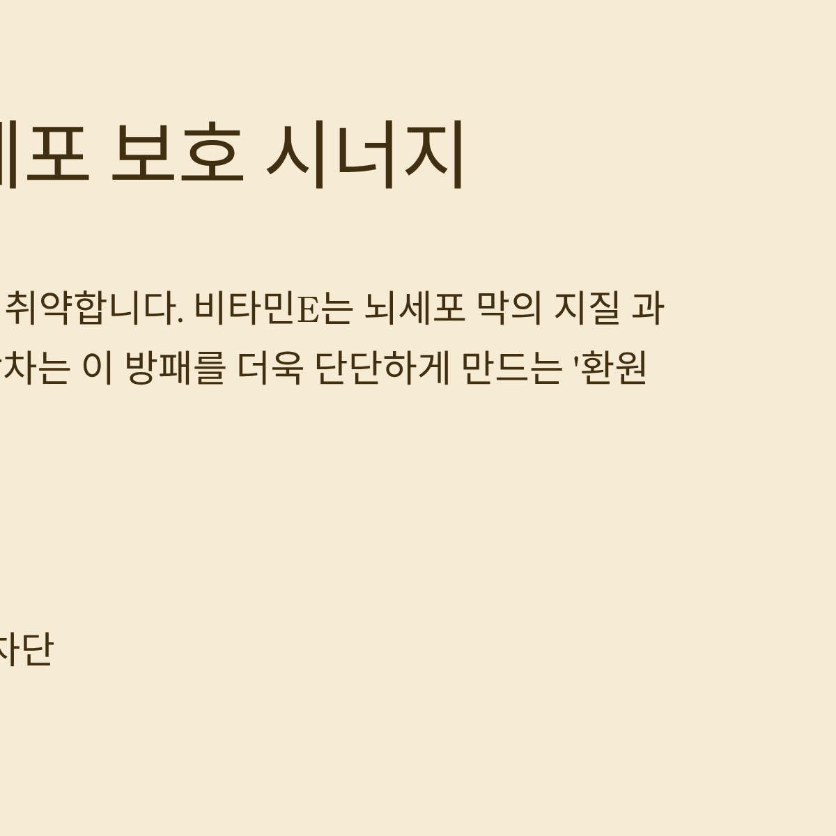 | 최종 결론 | 세포막 파괴 억제 | 항산화 효율 부스팅 | 치매 및 뇌 노화 예방 |