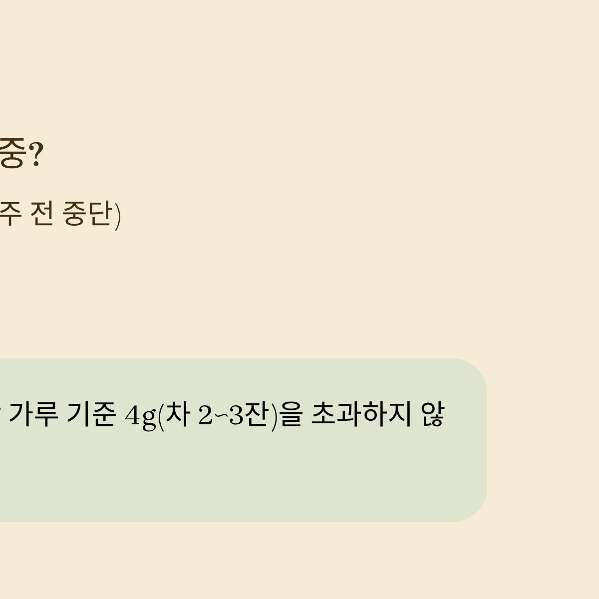 - YES → 공복 섭취 금지 (식후 연하게 1잔만 권장)