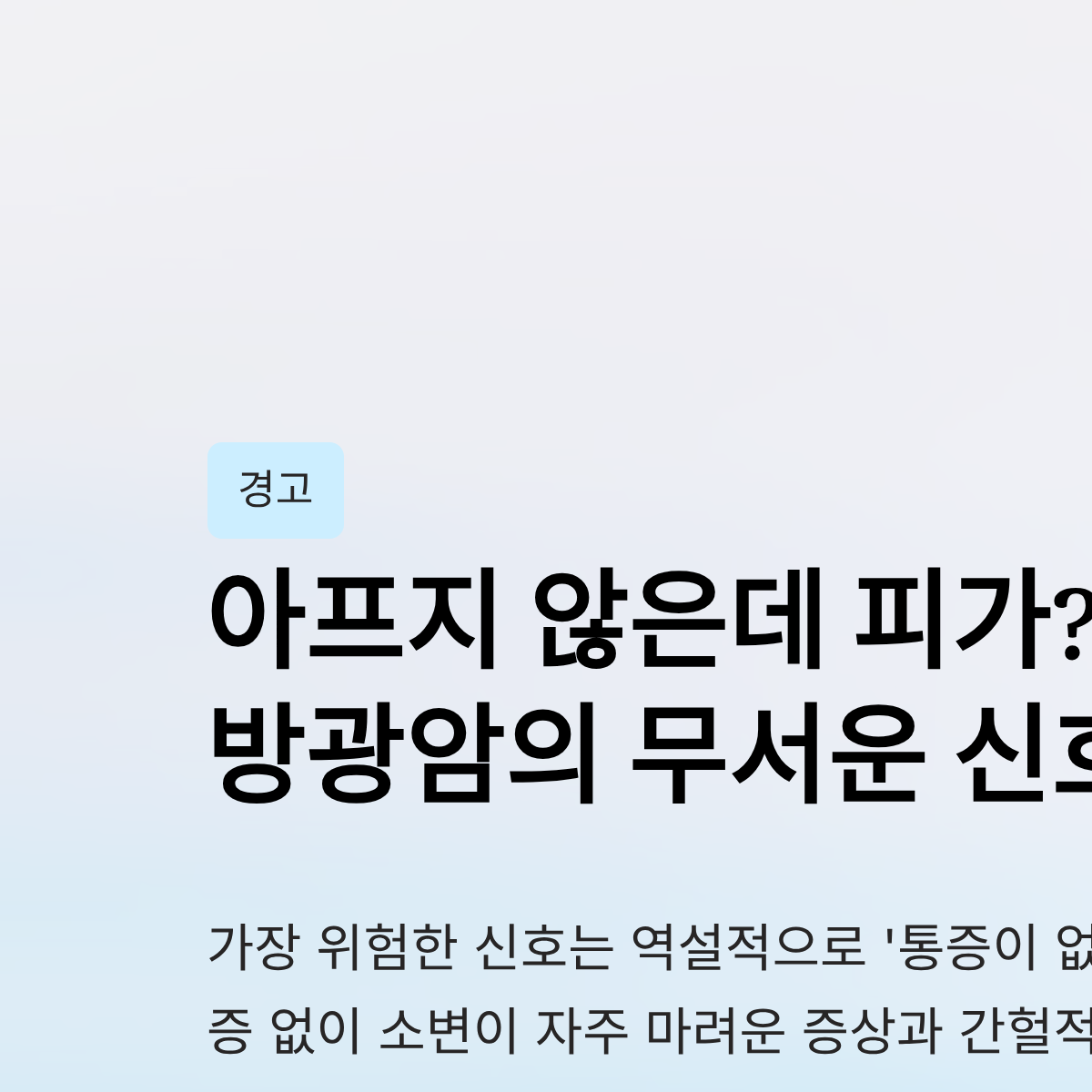 많은 분이 소변이 자주 마려운 증상과 함께 '피'를 보면 덜컥 겁을 먹지만, 역설적으로 '아프지 않은 혈뇨'가 더 위험합니다. 제가 상담했던 환자 중 한 분은 통증이 전혀 없어 단순 피로로 치부했다가 방광암 2기 진단을 받은 사례가 있었습니다. 통증이 동반되는 혈뇨는 대개 염증이나 결석이지만, 통증이 없는데 소변 색이 변했다면 이는 종양이나 신장 질환의 강력한 신호일 수 있습니다.