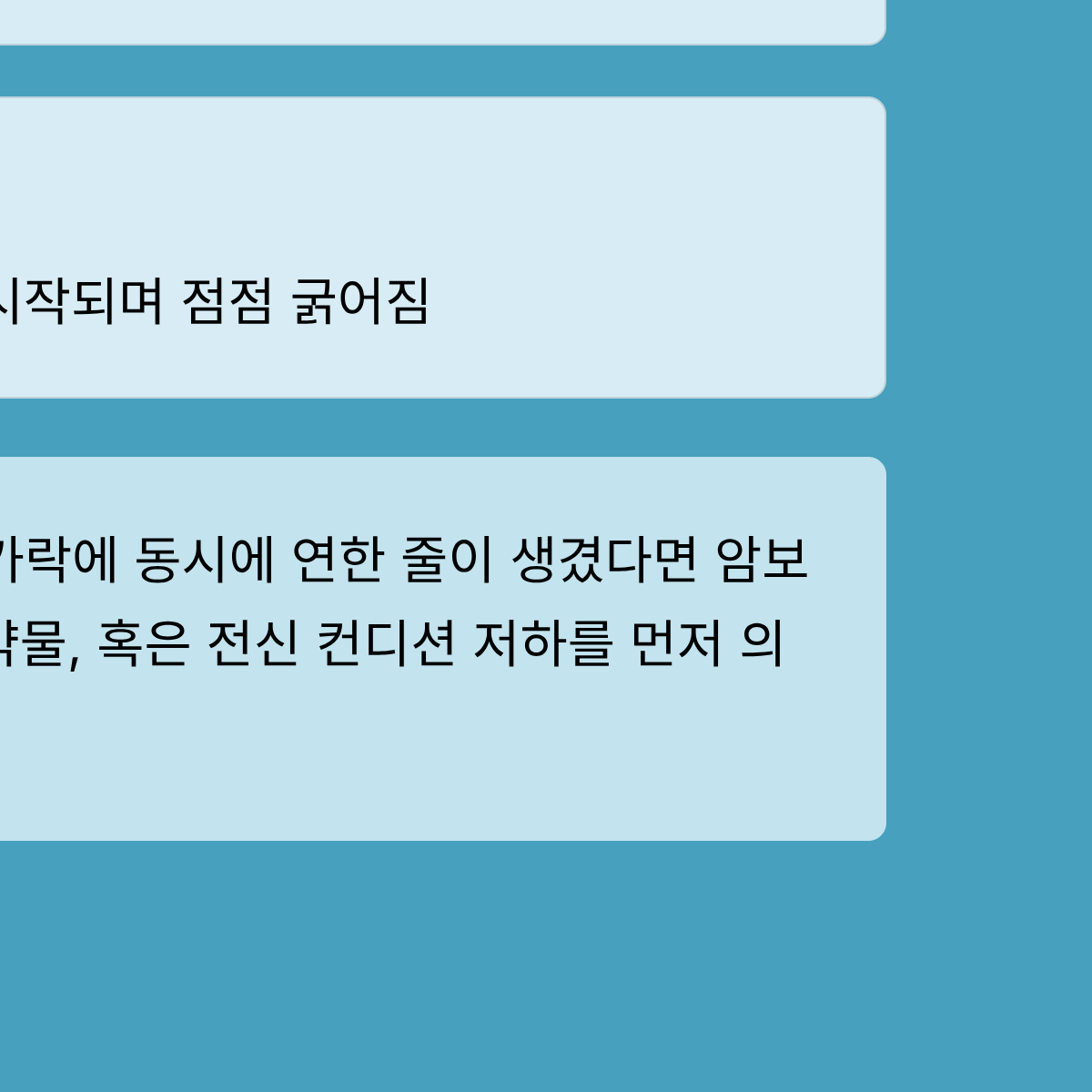 - 인사이트: 만약 2~3개 이상의 손가락에 동시에 연한 줄이 생겼다면 암보다는 영양 불균형이나 복용 중인 약물, 혹은 전신 컨디션 저하를 먼저 의심해보는 것이 합리적입니다.