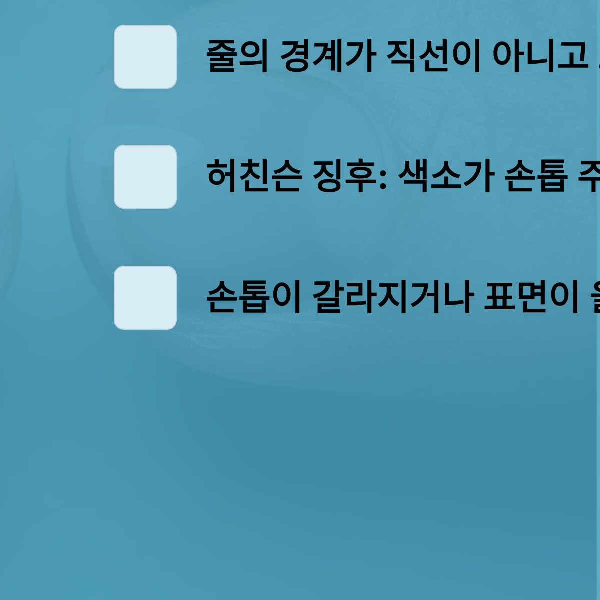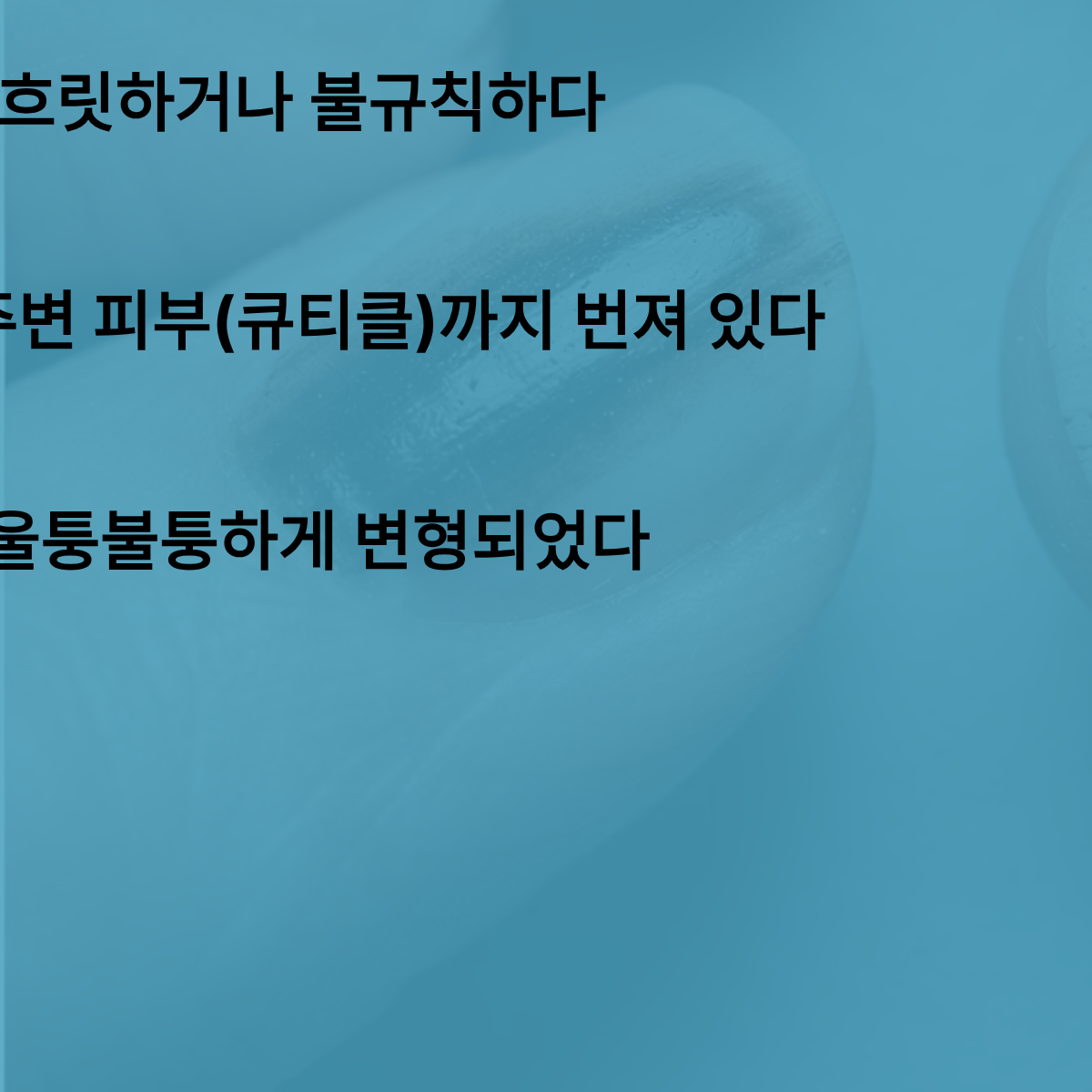 - [ ] 손톱이 갈라지거나 표면이 울퉁불퉁하게 변형되었다.