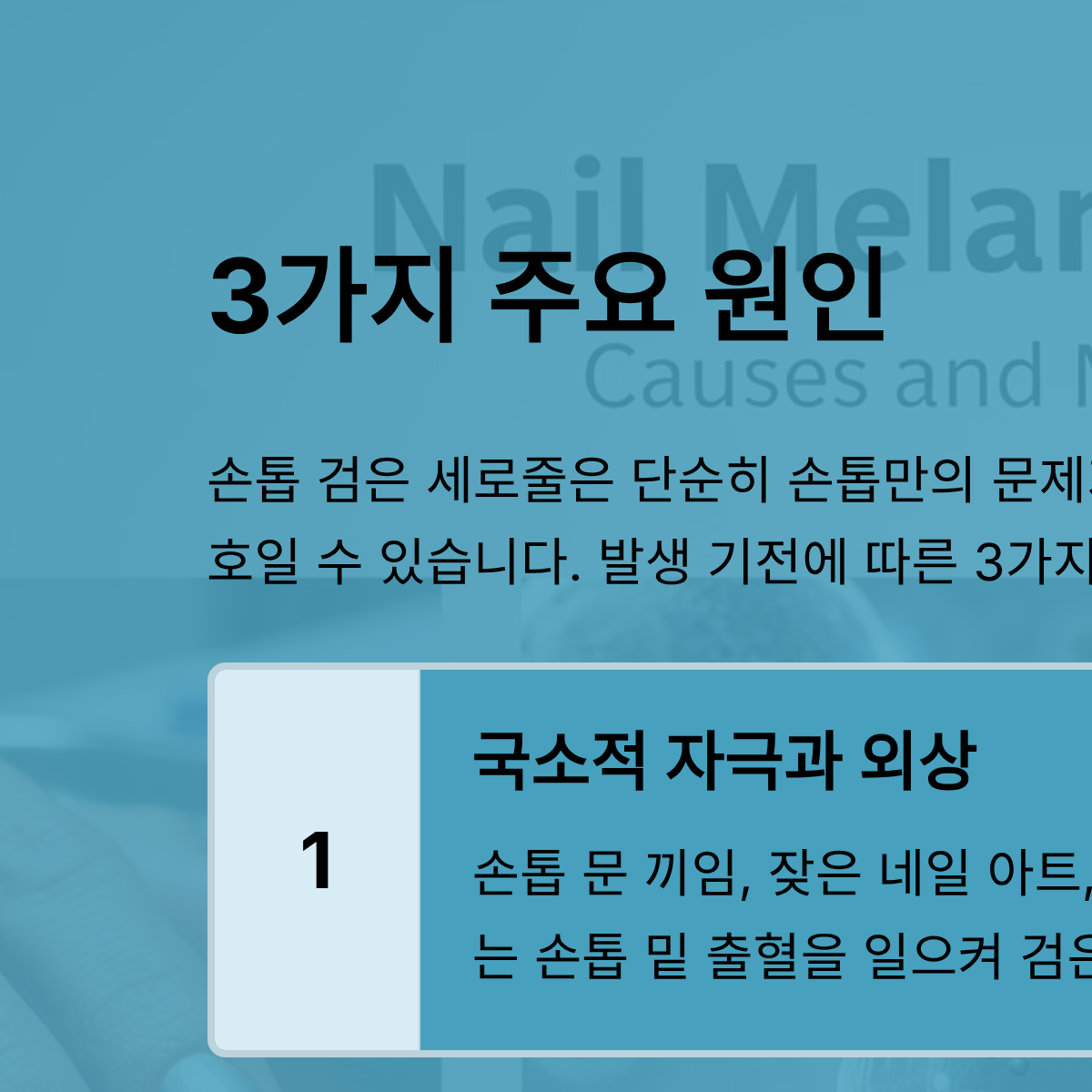 손톱 검은 세로줄은 단순히 손톱만의 문제가 아니라 우리 몸이 보내는 내부적인 신호일 수 있습니다. 경쟁 콘텐츠들이 단순히 '원인 나열'에 그쳤다면, 여기서는 발생 기전에 따른 3가지 핵심 카테고리로 분류하여 분석합니다.