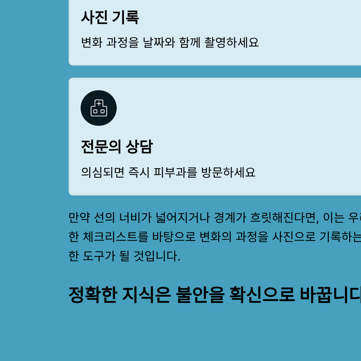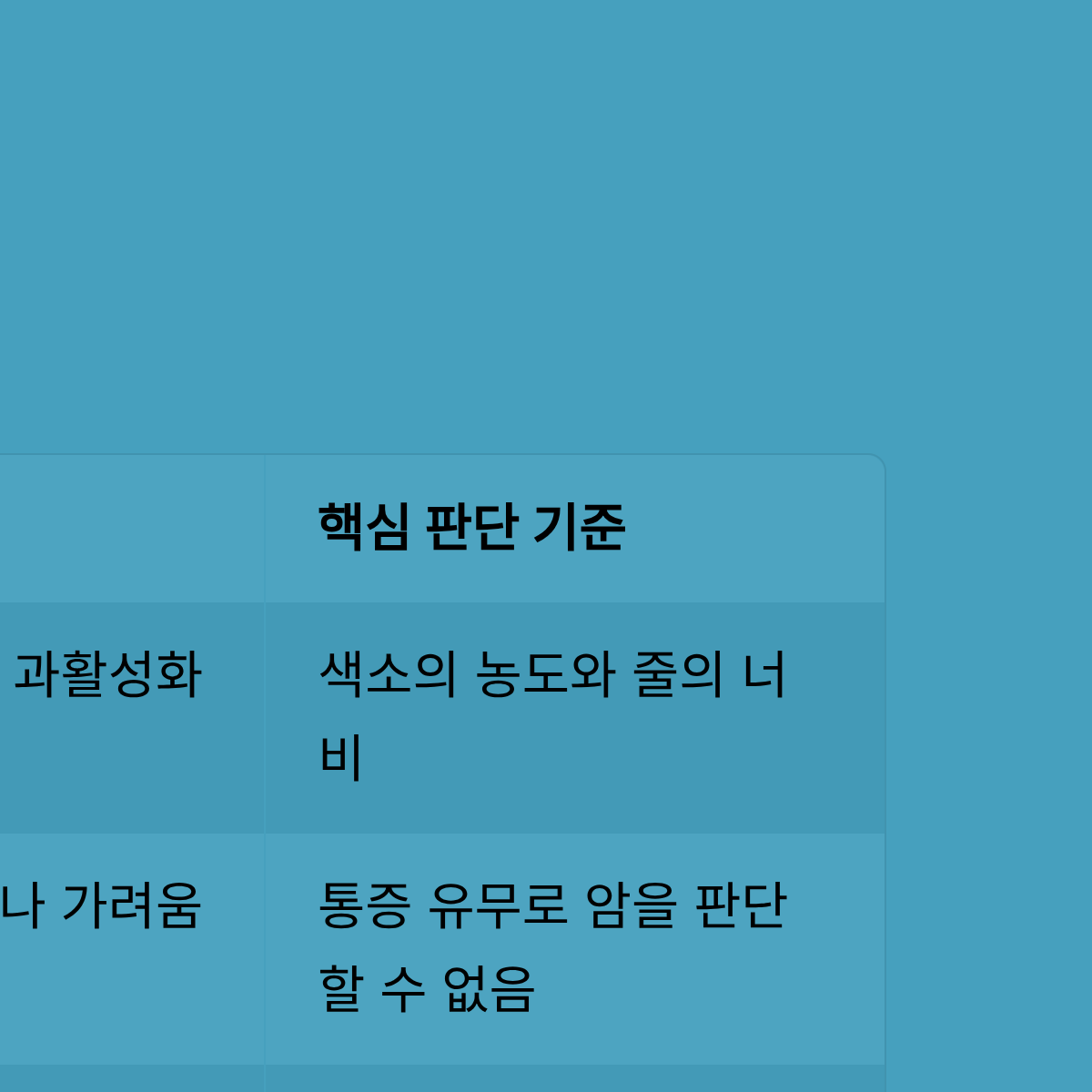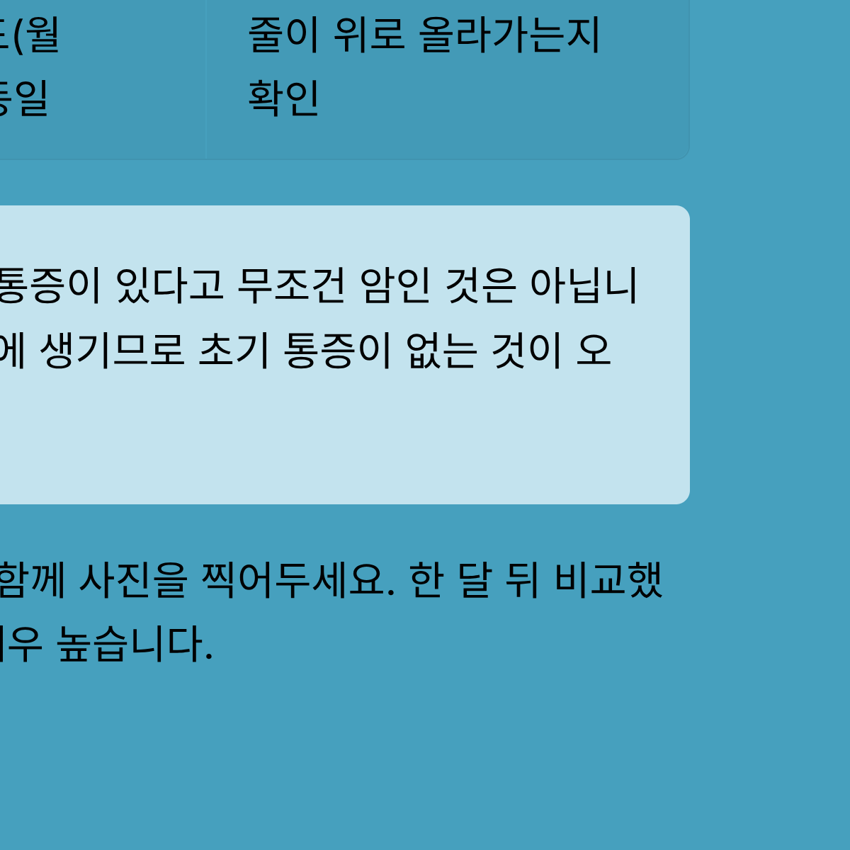 - 실전 적용 팁: 줄이 처음 발견되었을 때 날짜와 함께 사진을 찍어두세요. 한 달 뒤 사진과 비교했을 때 너비가 그대로라면 양성일 확률이 매우 높습니다.