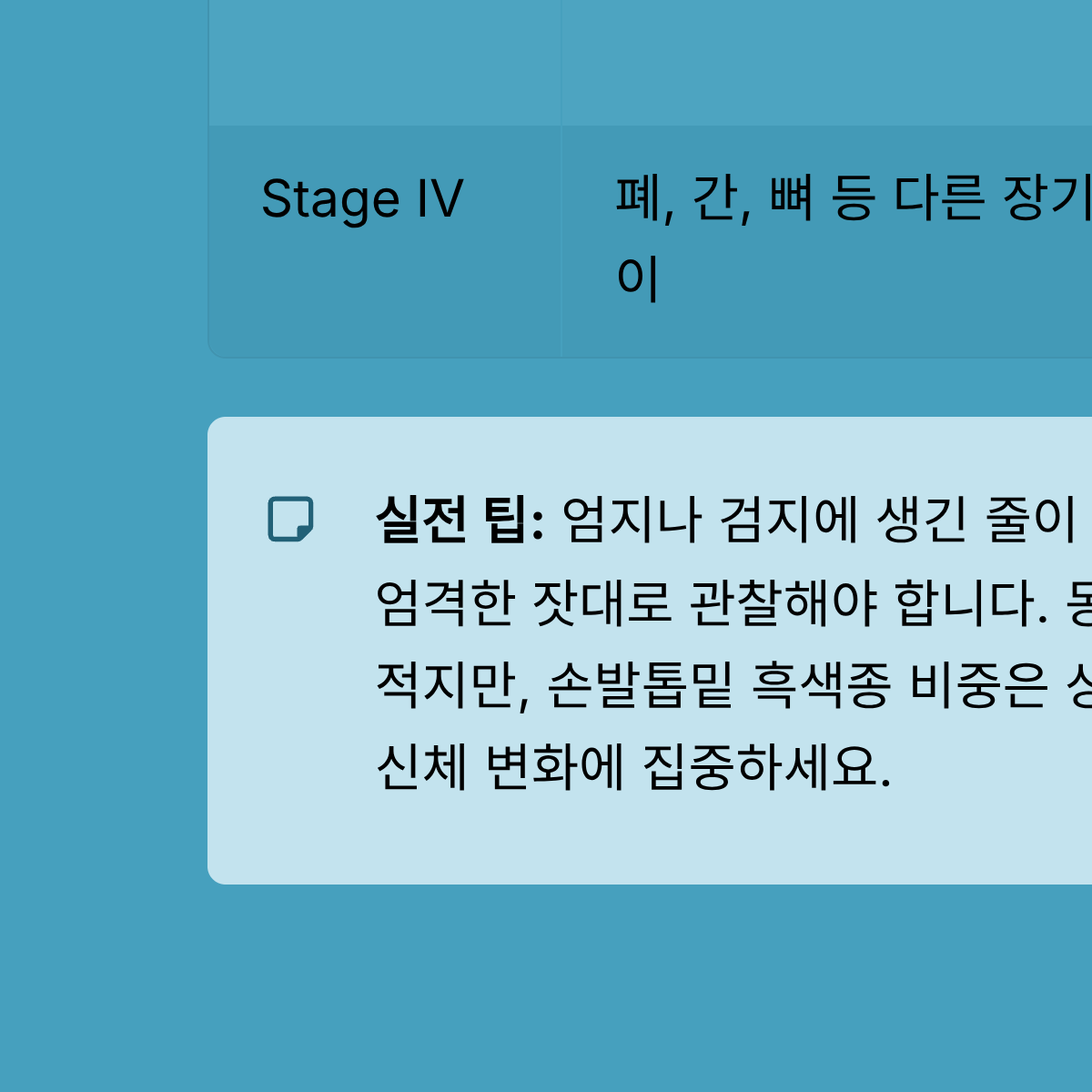 - 방치 시 위험도: 전이 발생 시 생존율 70% 이상 급감