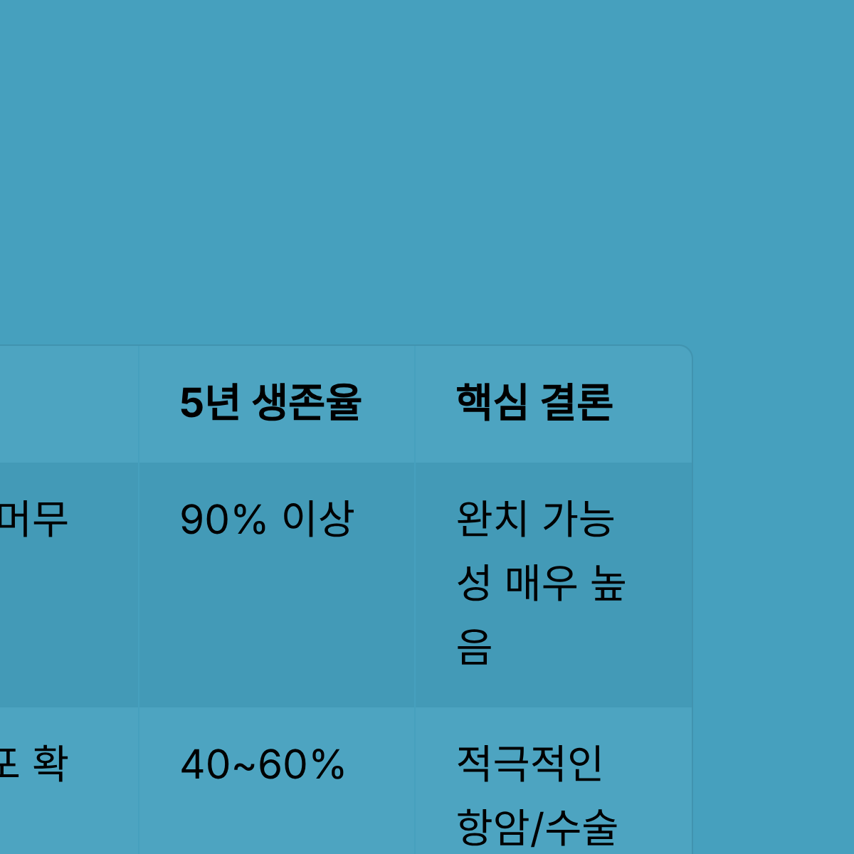 - 조기 발견 시 생존율: 90% 이상 (국소 단계 기준)