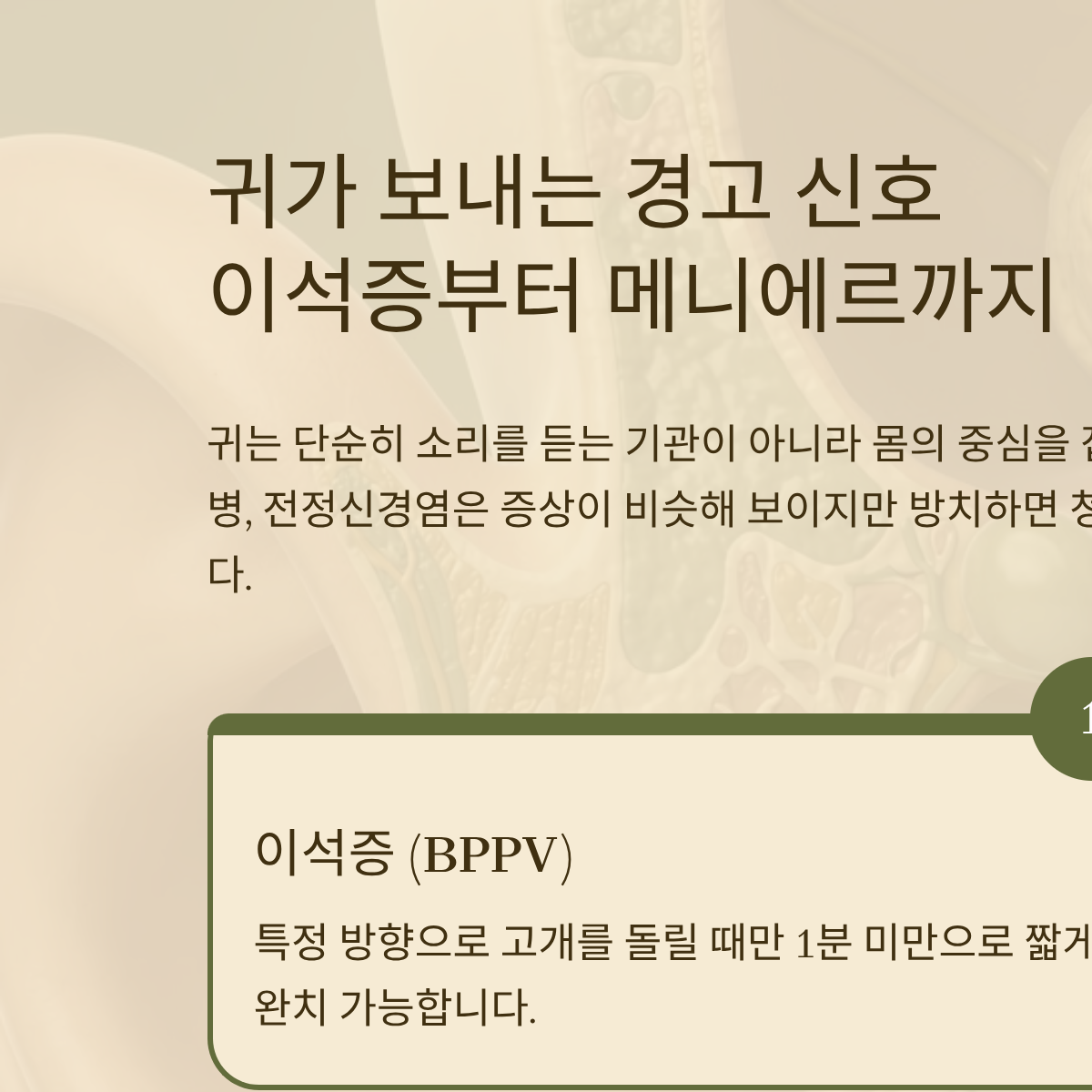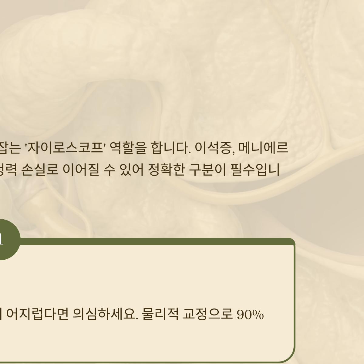 귀는 단순히 소리를 듣는 기관이 아니라 몸의 중심을 잡는 '자이로스코프' 역할을 합니다. 이석증(BPPV), 메니에르병(Meniere's Disease), 전정신경염은 증상이 비슷해 보이지만, 방치할 경우 청력 손실로 이어질 수 있어 정확한 구분이 필수적입니다.