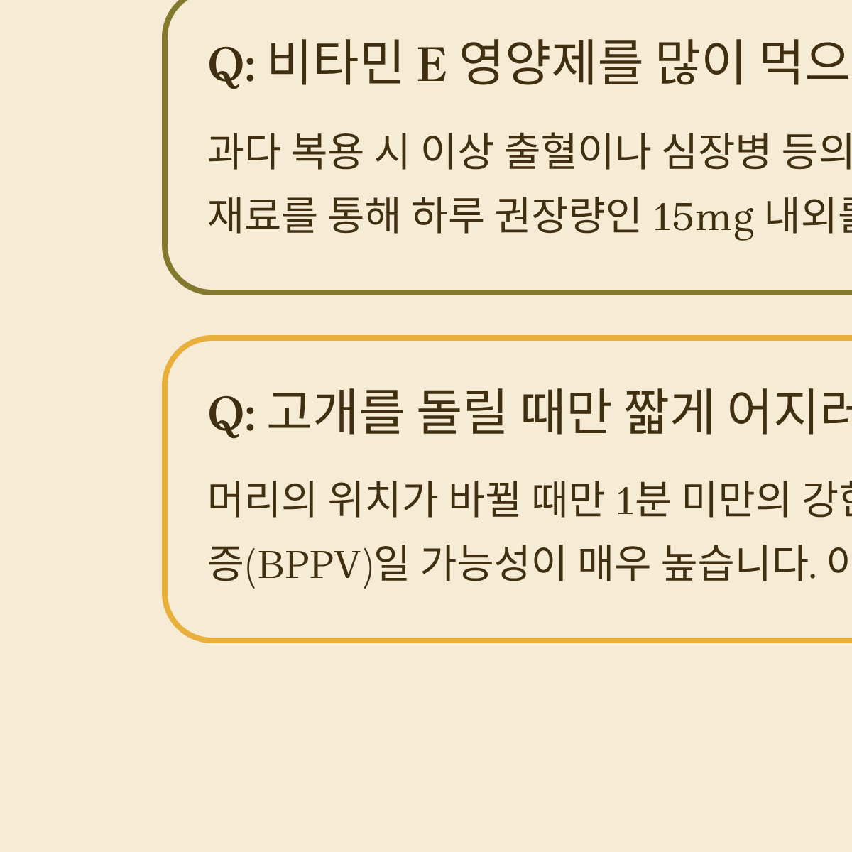 Q: 어지러울 때 비타민 E 영양제를 무조건 많이 먹는 것이 도움이 될까요?