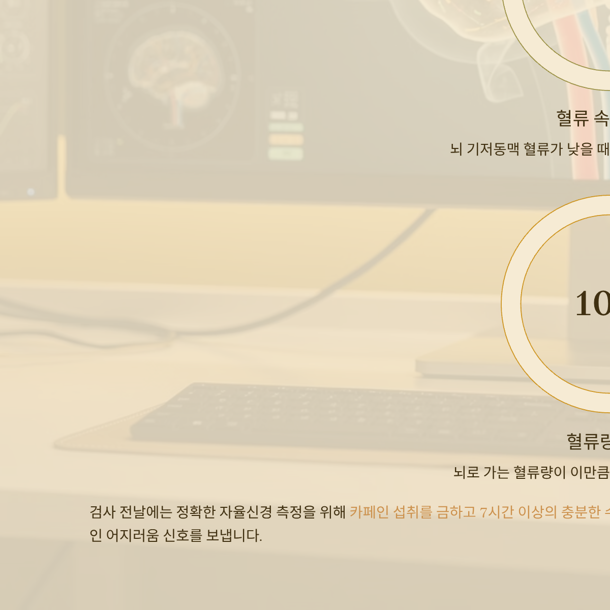 실전 적용 팁으로, 검사 전날에는 정확한 자율신경 측정을 위해 카페인 섭취를 금하고 7시간 이상의 충분한 수면을 취하는 것이 중요합니다.