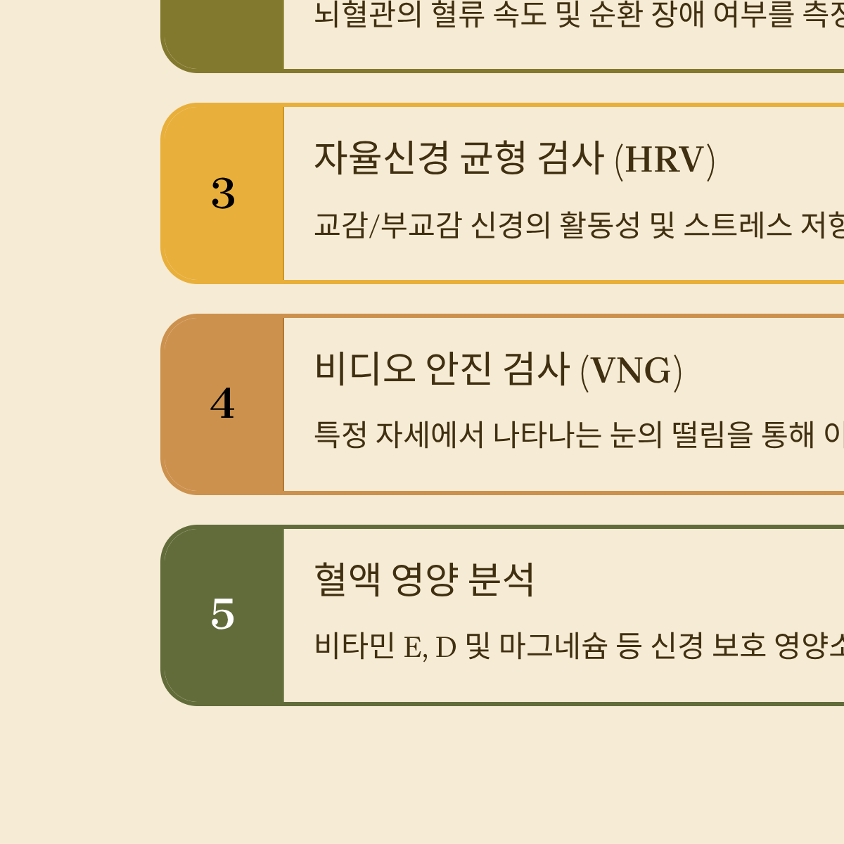 - [ ] 혈액 영양 분석: 비타민 E, D 및 마그네슘 등 신경 보호 영양소 수치 확인