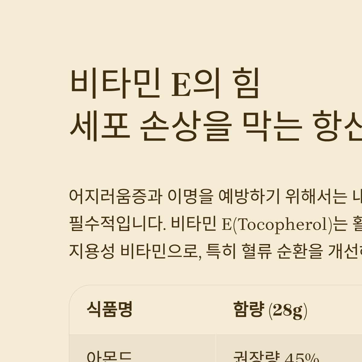 세포 손상을 억제하는 비타민 E 식단의 중요성