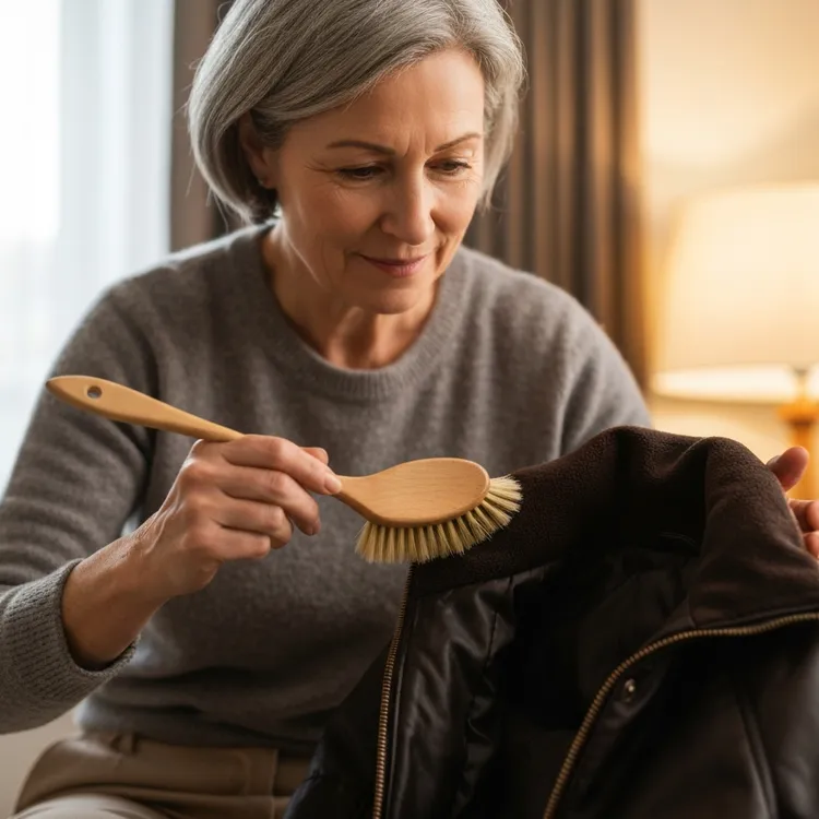 3. 가벼운 솔질: 원단 결을 따라 한 방향으로만 살살 문지릅니다. (박박 문지르면 DWR 코팅(Durable Water Repellent, 내구 발수 코팅)이 벗겨질 수 있습니다.)
