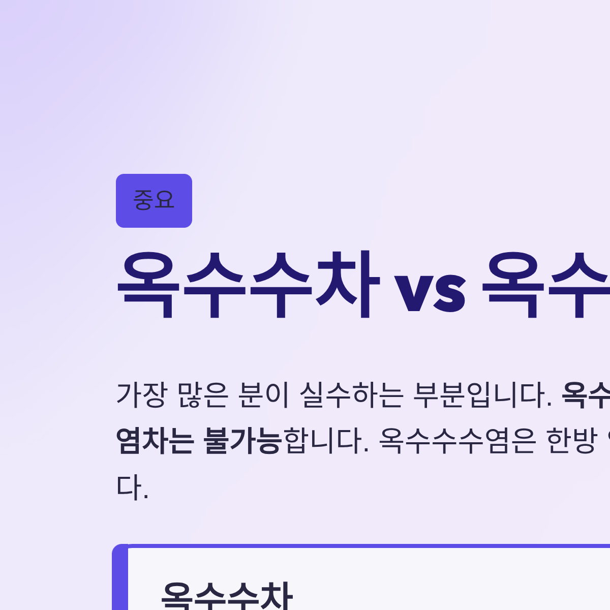 가장 많은 분이 실수하는 부분이 바로 '옥수수차'와 '옥수수수염차'를 동일하게 생각하는 것입니다. 결론부터 말씀드리면 옥수수차는 식수 대용이 가능하지만, 옥수수수염차는 불가능합니다. 옥수수수염은 한방에서 '옥미수'라 불리는 약재로, 강한 이뇨 작용을 하기 때문입니다.