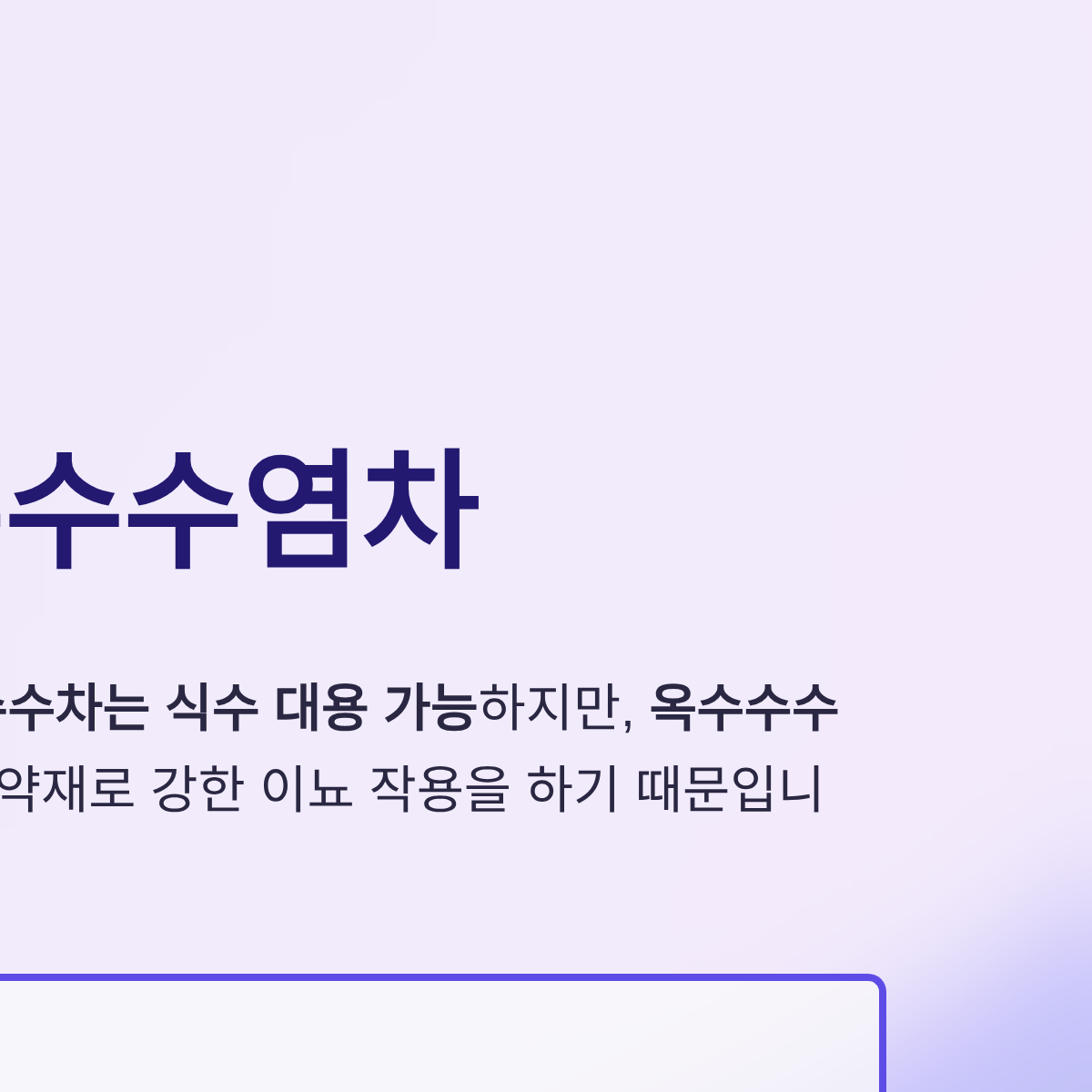 - [ ] 이뇨 작용이 과도하지 않은가? (옥수수차: YES / 옥수수수염차: NO)