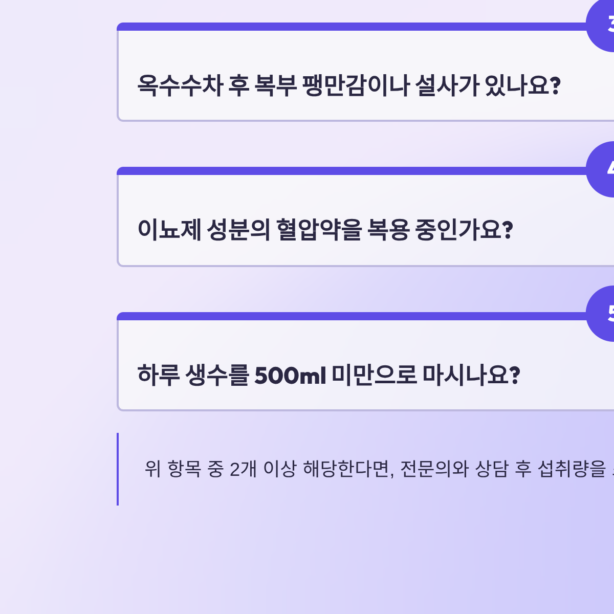 옥수수차 섭취 전 자가 진단 체크리스트: